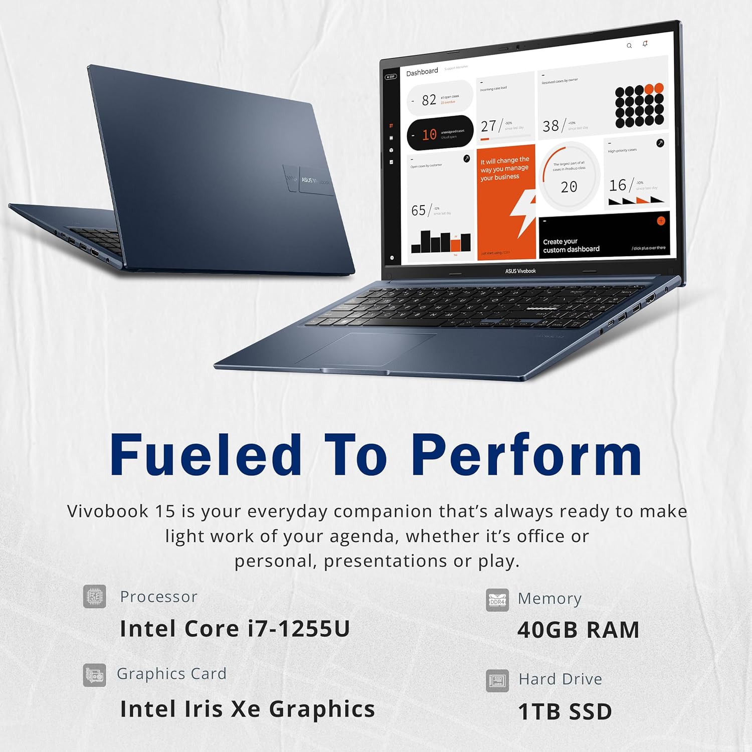 ASUS VivoBook 15.6″ FHD Touchscreen Laptop, Intel Core i7-1255U, 40GB RAM, 1TB SSD, Intel Iris Xe Graphics, Backlit Keyboard, Webcam, WiFi 6, Windows 11 Pro, Quiet Blue, 32GB Hotface USB Card