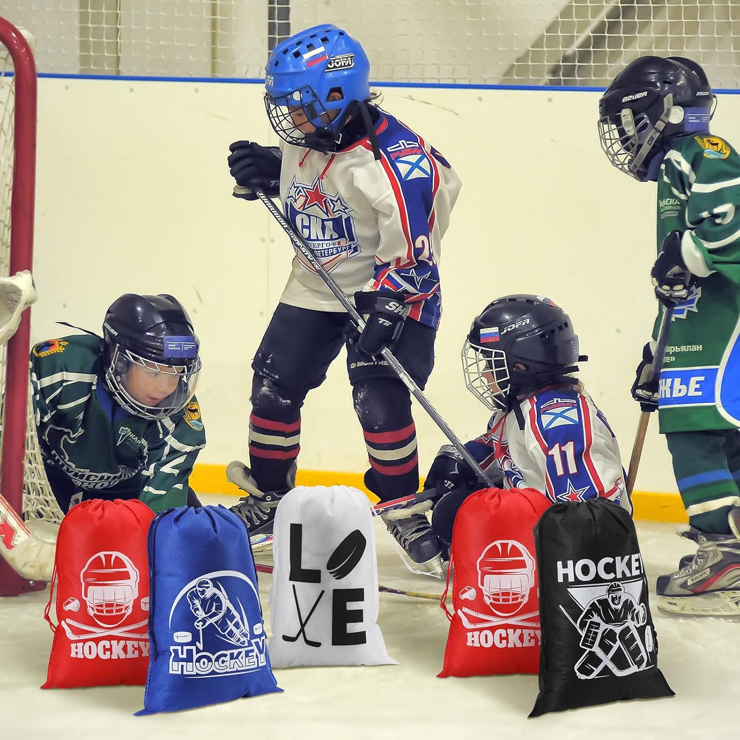 Quality Material: these hockey party favor bags are made of quality non woven material, safe and reliable, soft and lightweight, with clear printings and bright colors, not easy to fade or wear, you can use them with confidence