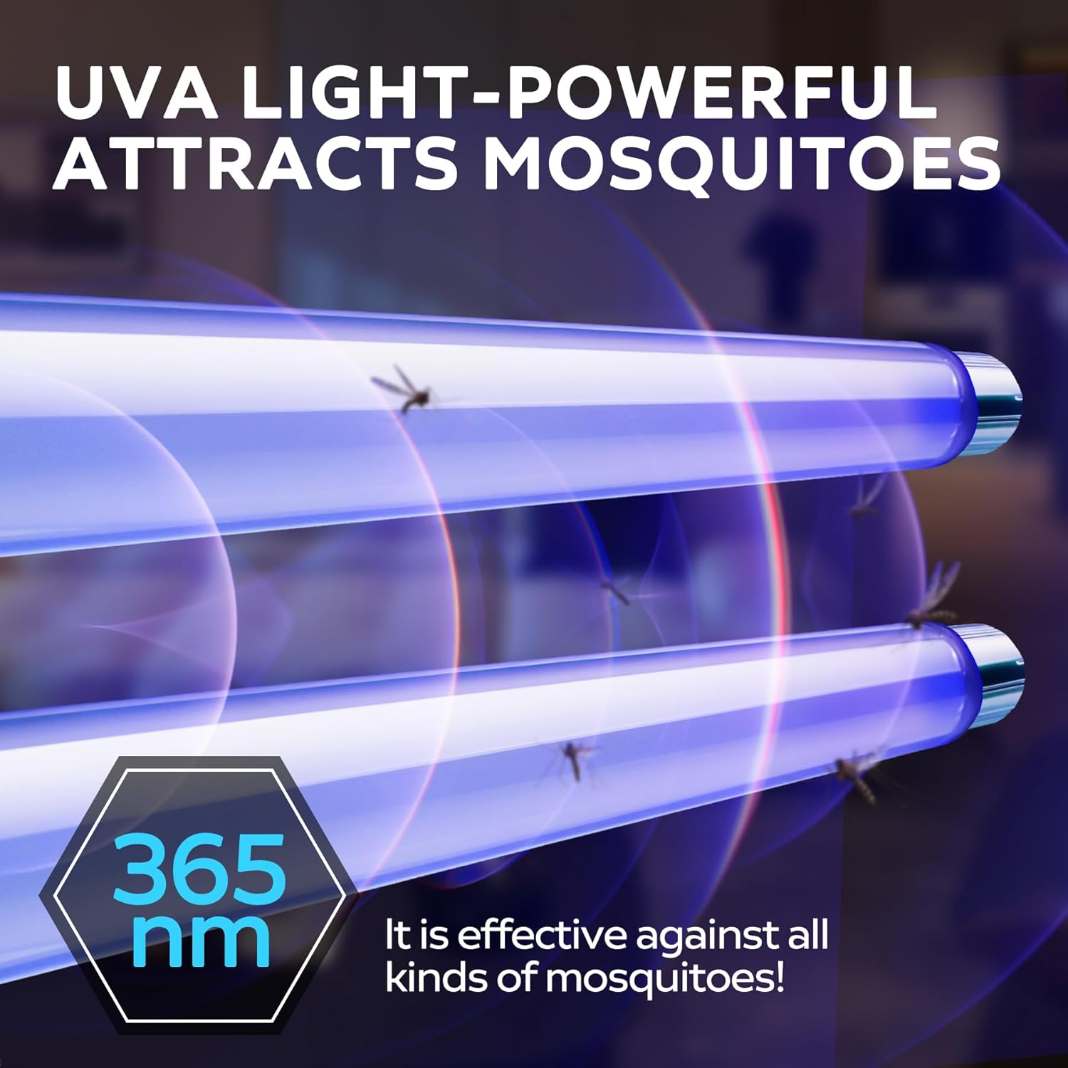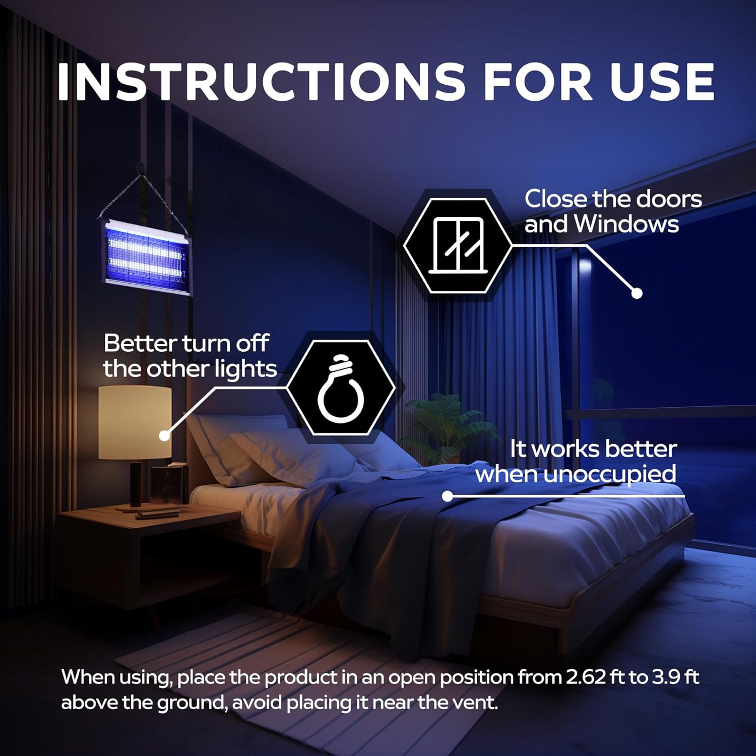 ADVANCED TECHNOLOGY – This upgraded electric mosquito killer can cover an area of up to 1500 square feet, the 360° light transmission design makes it more widely illuminated, it will release ultraviolet light to attract insects, when the mosquitoes touch the grid, they will be instantly electrocuted to death.