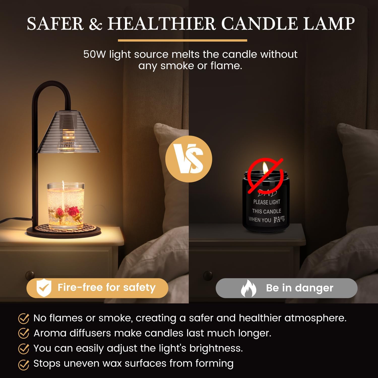 【Fits All Candle Sizes】The distance from the base to the lampshade of this candle warmer lamp is 5.9 inches, suitable for taper candles and most types of jar candles or wax melts. Beneath the wooden base, anti-slip pads are also added to ensure stability, providing a sense of security when using this jar candle warmer. Very safe for home gatherings. An excellent gift choice for Mother’s Day, Valentine’s Day, Easter, graduation gifts, Father’s Day gifts, Teacher’s Day gifts, Halloween, Thanksgiving, Christmas, and birthdays.