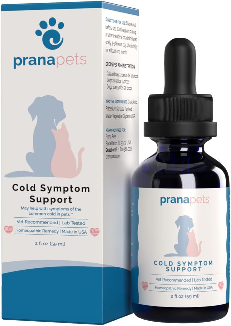 𝐂𝐎𝐋𝐃 𝐒𝐔𝐏𝐏𝐎𝐑𝐓 – Prana Pets Cold Symptom Support for dogs and cats aids in relieving a full range of symptoms of respiratory distress. Simply administer the recommended drops into their mouth or add it to their wet or dry food daily.