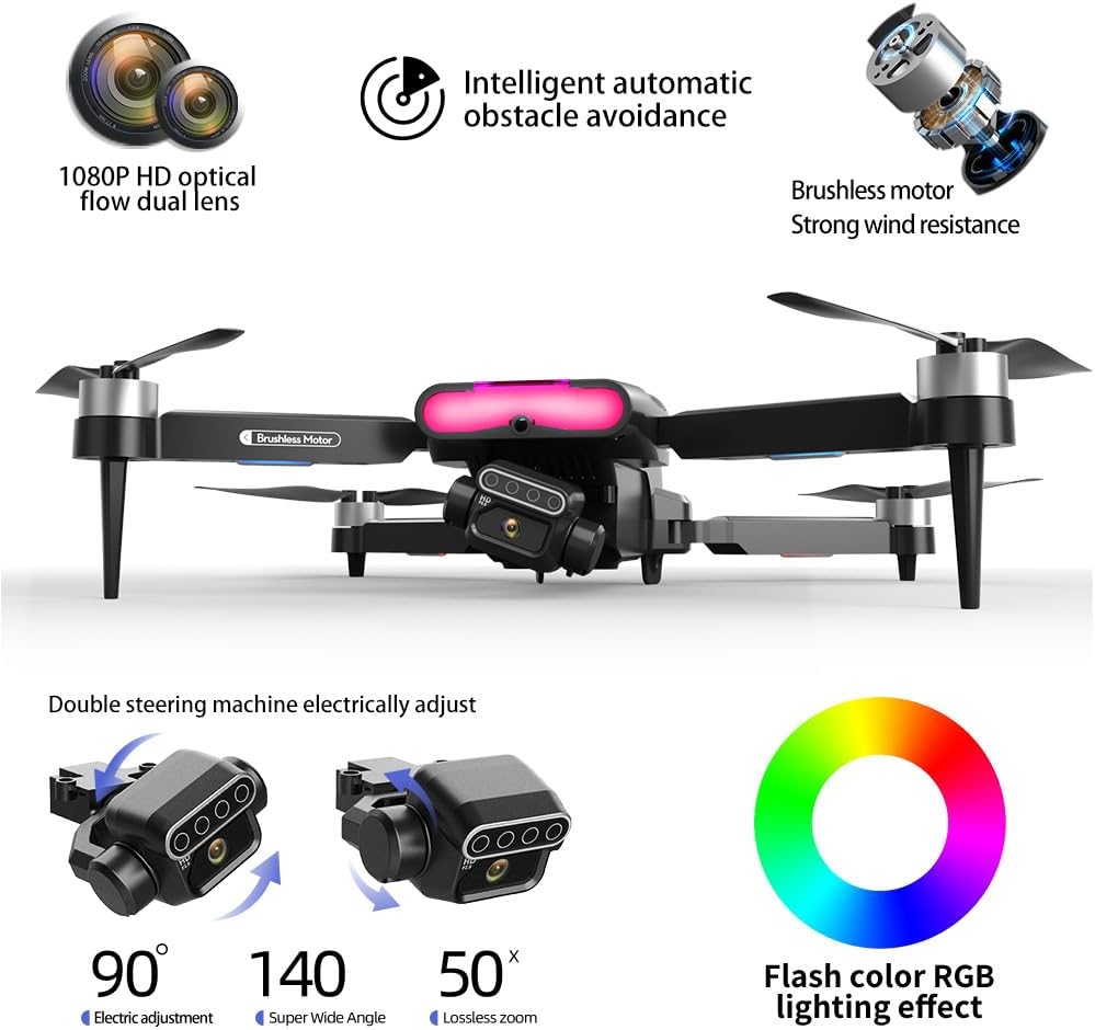 Drone with Camera for Adults 1080P HD Dual Rudder Eletric Adjust, Mini Drone with Obstacle Avoidance 50 Min Long Flight Time,Foldable RC Quadcopter with Brushless Motor for Beginner,Dual Camera Drone from Techwonderz