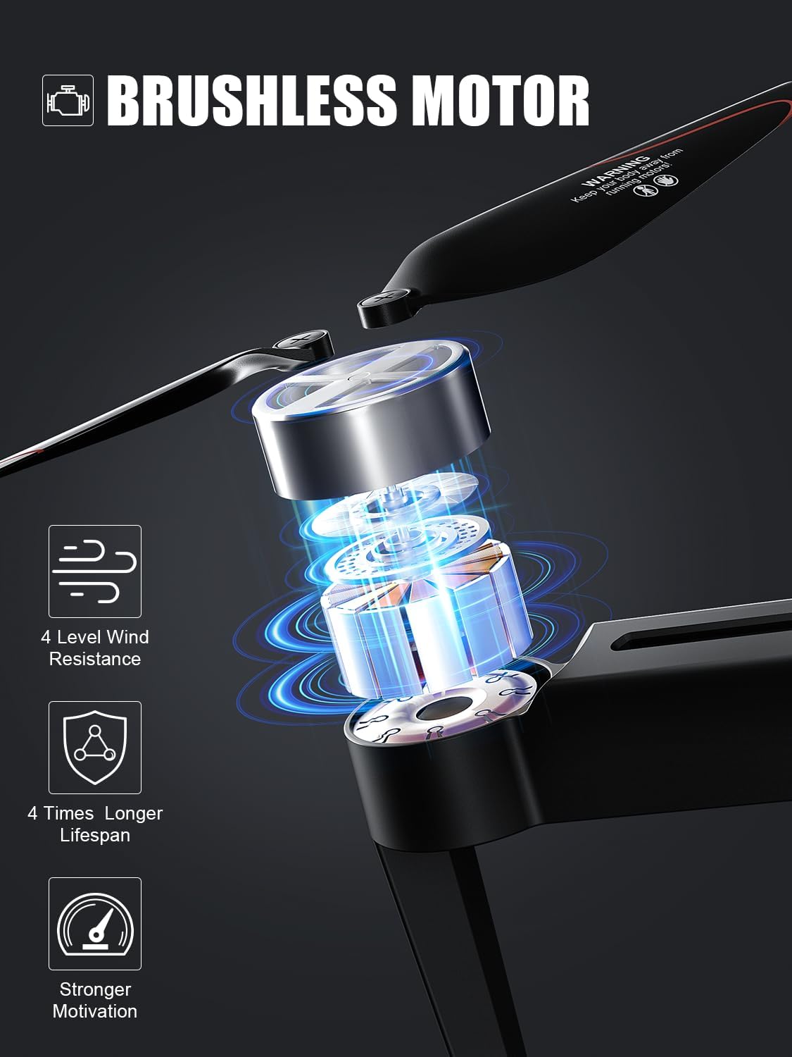 Upgraded Brushless Motor: Equiped with upgraded burshless motor to help the beginner to avoid the worries of motor defective after serval usage. with Low power consumptions can give a quieter flight experience