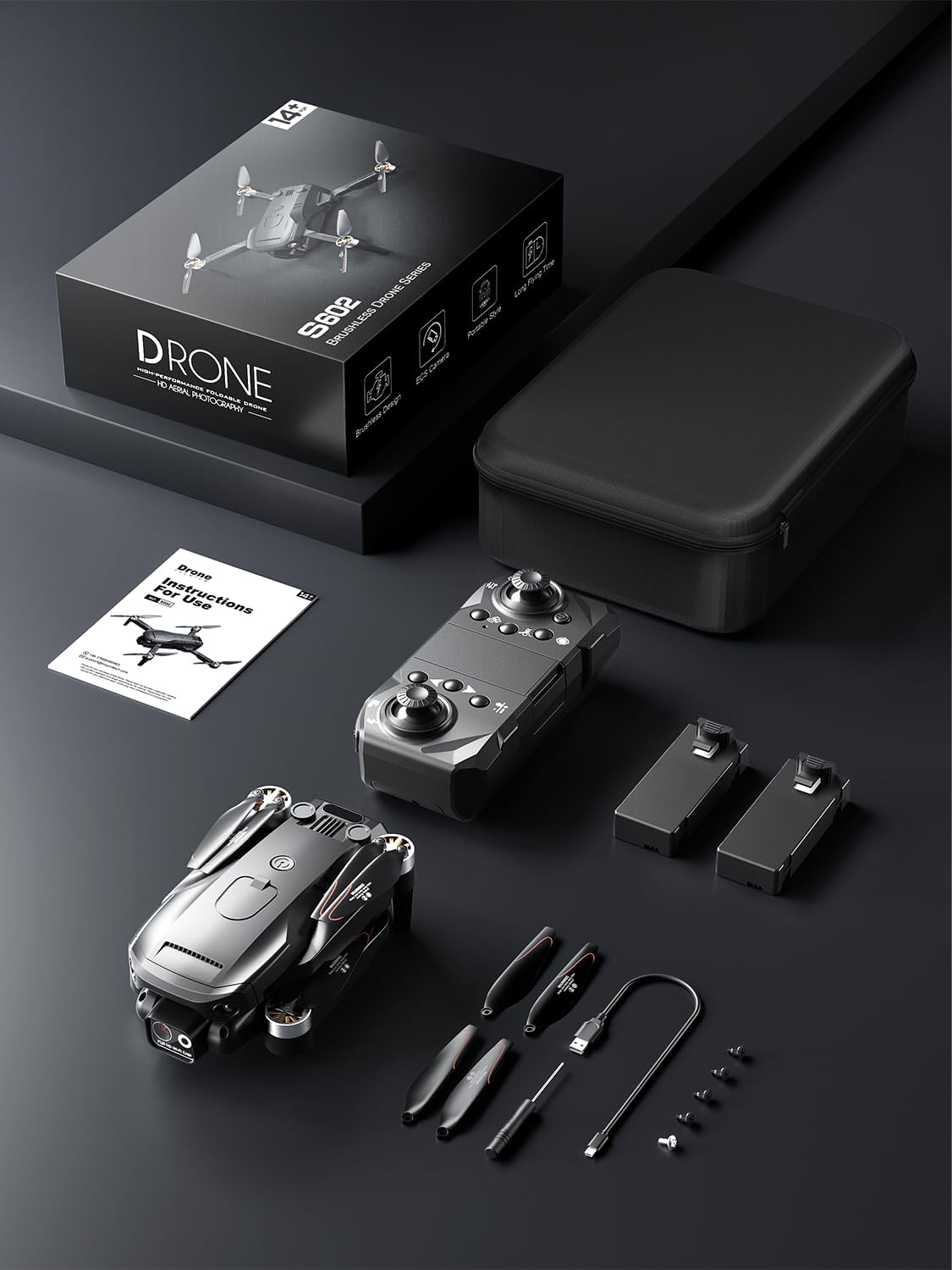 More Accessories: The package includes a carrying case, making it convenient for outdoor travel. It comes with 2pcs 1600mAh batteries, and the casing and exterior painting have been strengthened to eliminate the plastic feel. With a flight time of up to 40 minutes, this drone stands out in its class. It is equipped with a controller, propeller guard, and spare fan blades, making it an excellent choice for gifts.