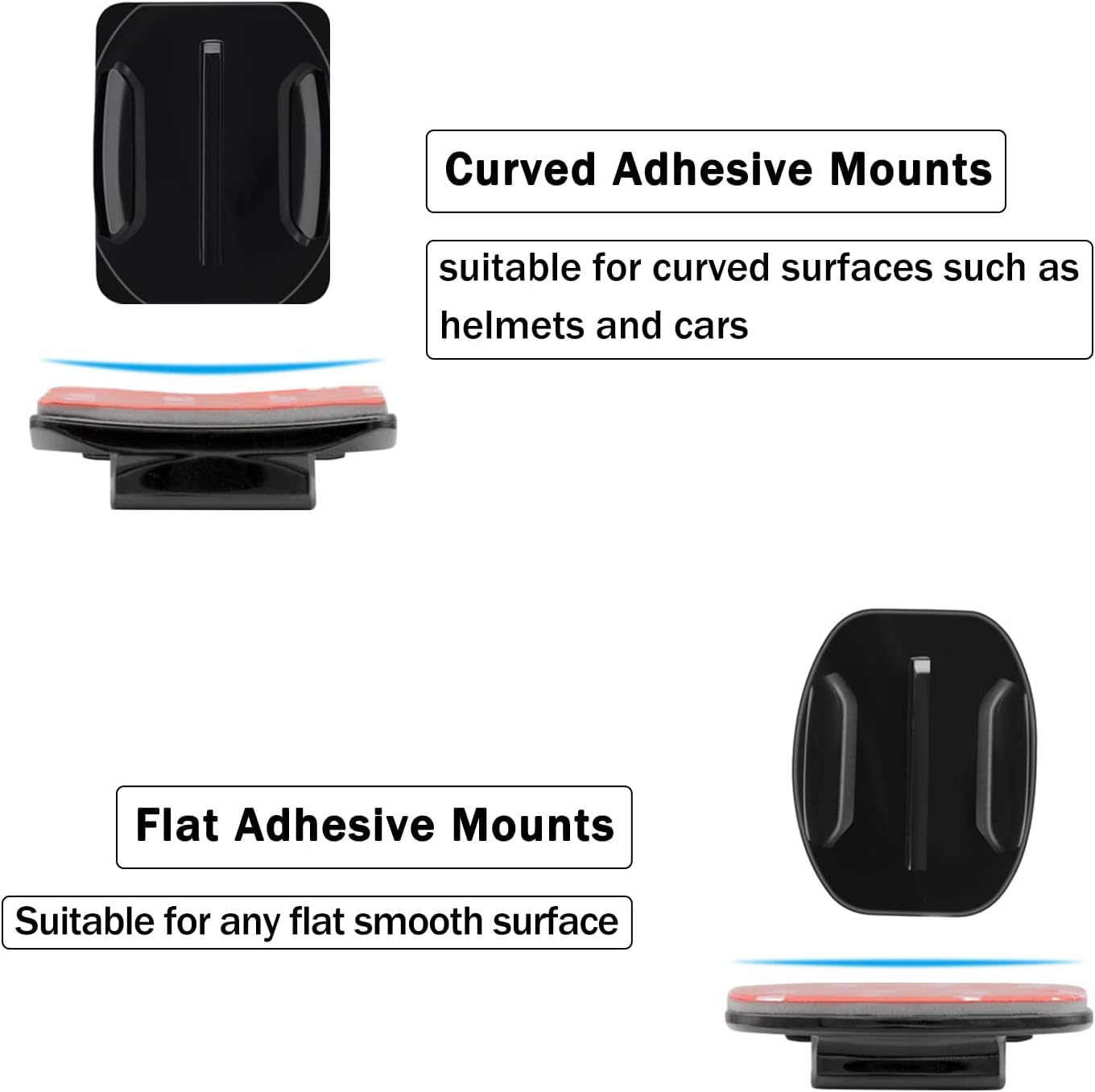 The box contains 4x curved and 2x flat Adhesive Sticky mounts