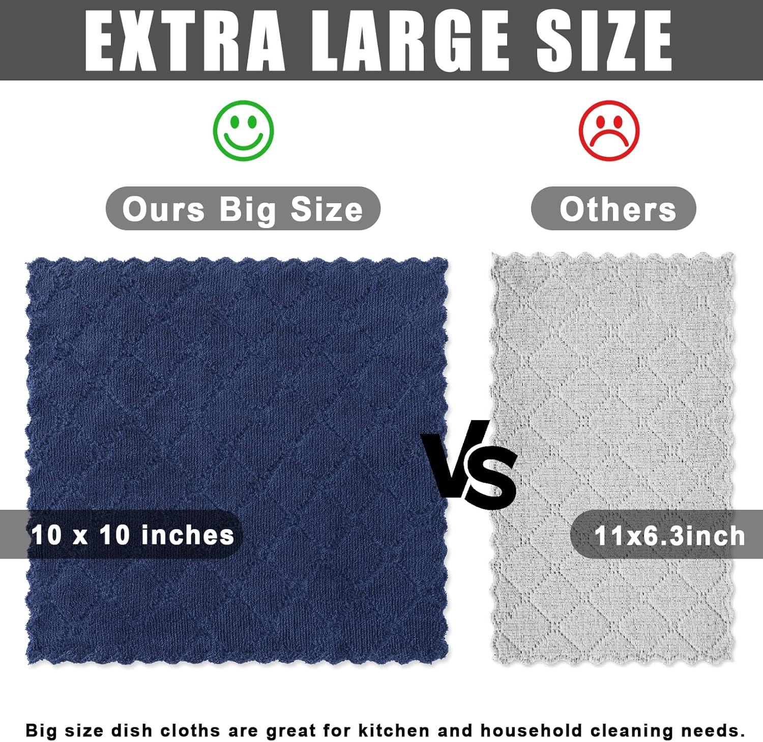 √Ultra Absorbent: With a plush microfiber design, these kitchen washcloths are super absorbent for quick clean-up of spills, wiping oil stains and very durable for use over and over without losing effectiveness. Ideal for drying dishes and kitchen cleaning.
