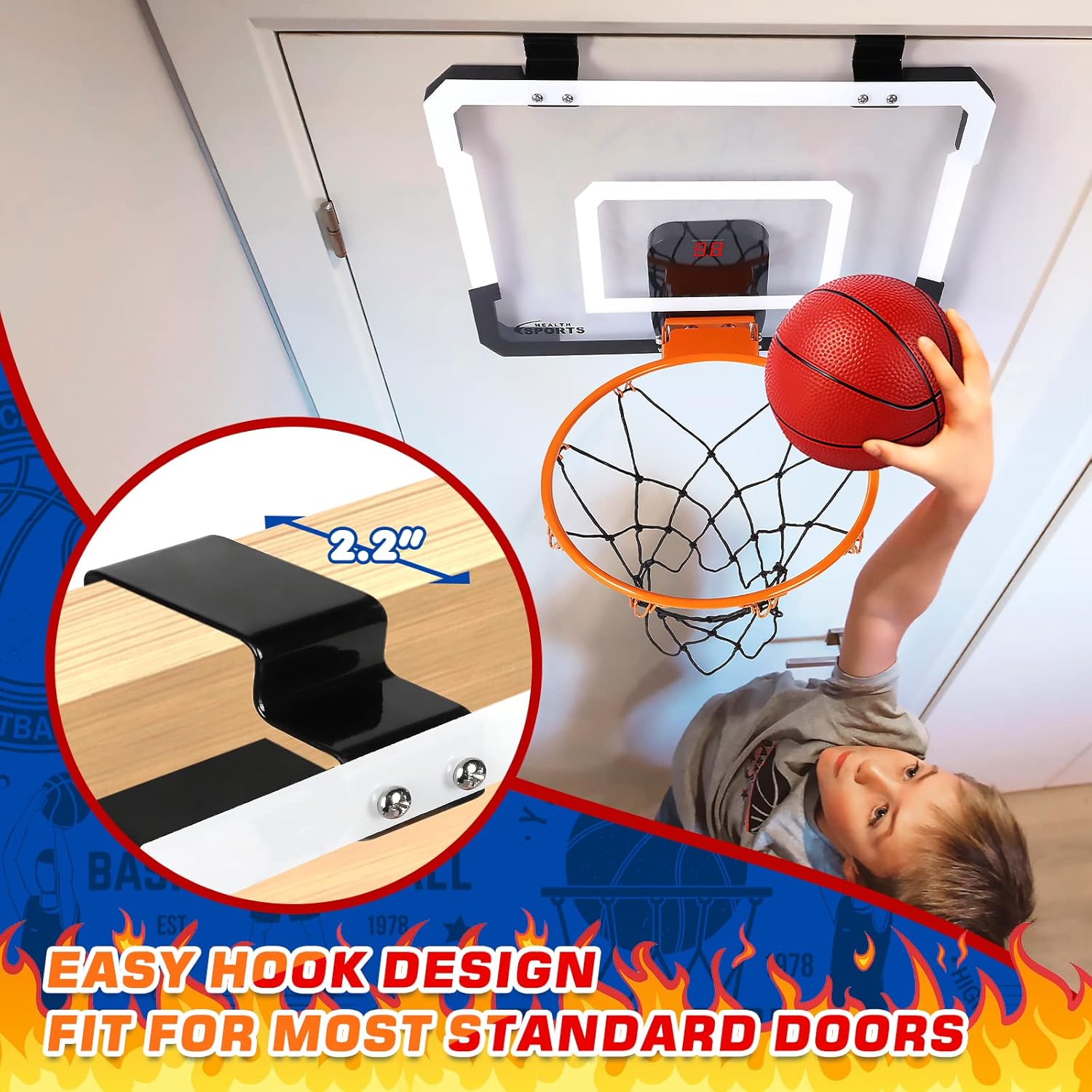 🏀HIGH QUALITY INDOOR BASKETBALL HOOP SET: The backboard is made of a high quality clear polycarbonate, shatter resistant and robust, has excellent toughness and durability. Indoor basketball hoop’s thick foam padding on the backboard and brackets protects your door from damage and reduces noise. Comes with 4 rubber basketballs perfect for indoor or outdoor play with friends or family.