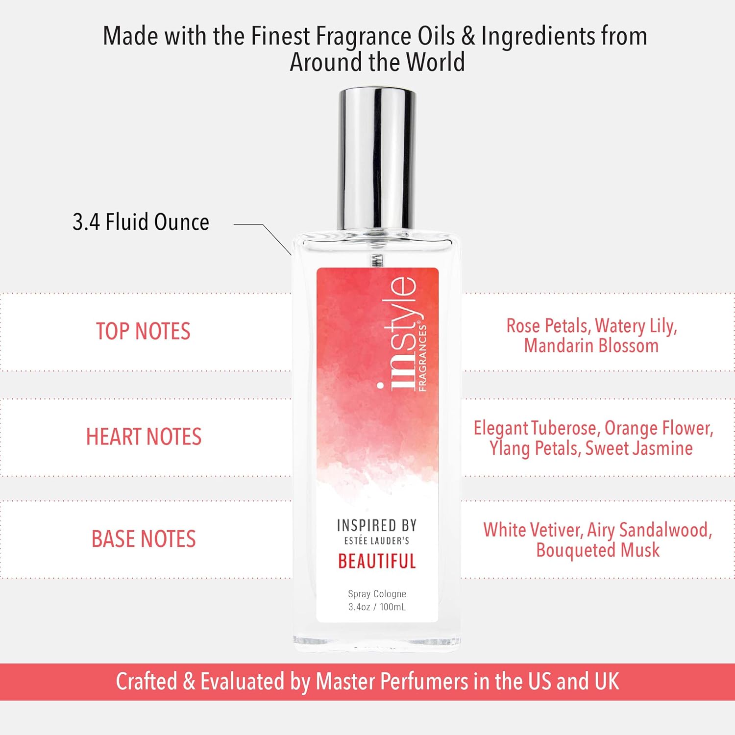 Instyle Fragrances | Inspired by Estee Lauder’s Beautiful | Women’s Eau de Toilette | Vegan, Paraben & Phthalate Free | Never Tested on Animals | 3.4 Fl Oz