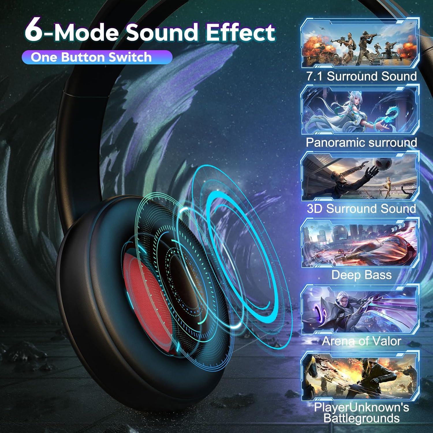 UNLEASH IMMERSIVE GAMING AND MUSIC EXPERIENCE: utilizing advanced USB algorithms and powerful speaker drivers, the cutting-edge USB gaming headset allows you to effortlessly switch between 6 dynamic sound effects with just a button to enjoy audio versatility. Immerse yourself in 7.1 Surround Sound, Panoramic Surround, 3D Surround Sound, and Deep Bass whether you’re gaming, enjoying music concerts, or occasional movie watching.