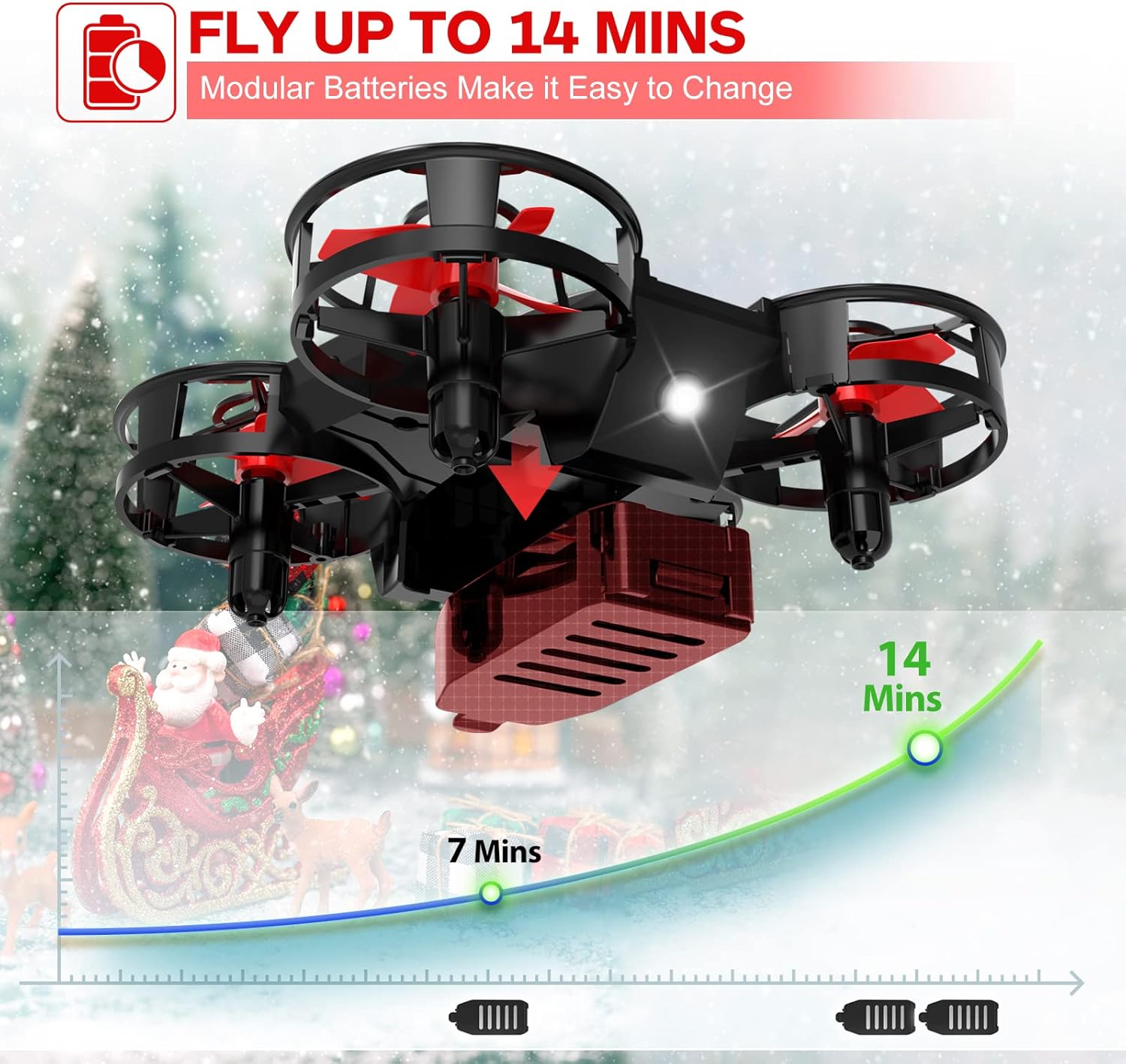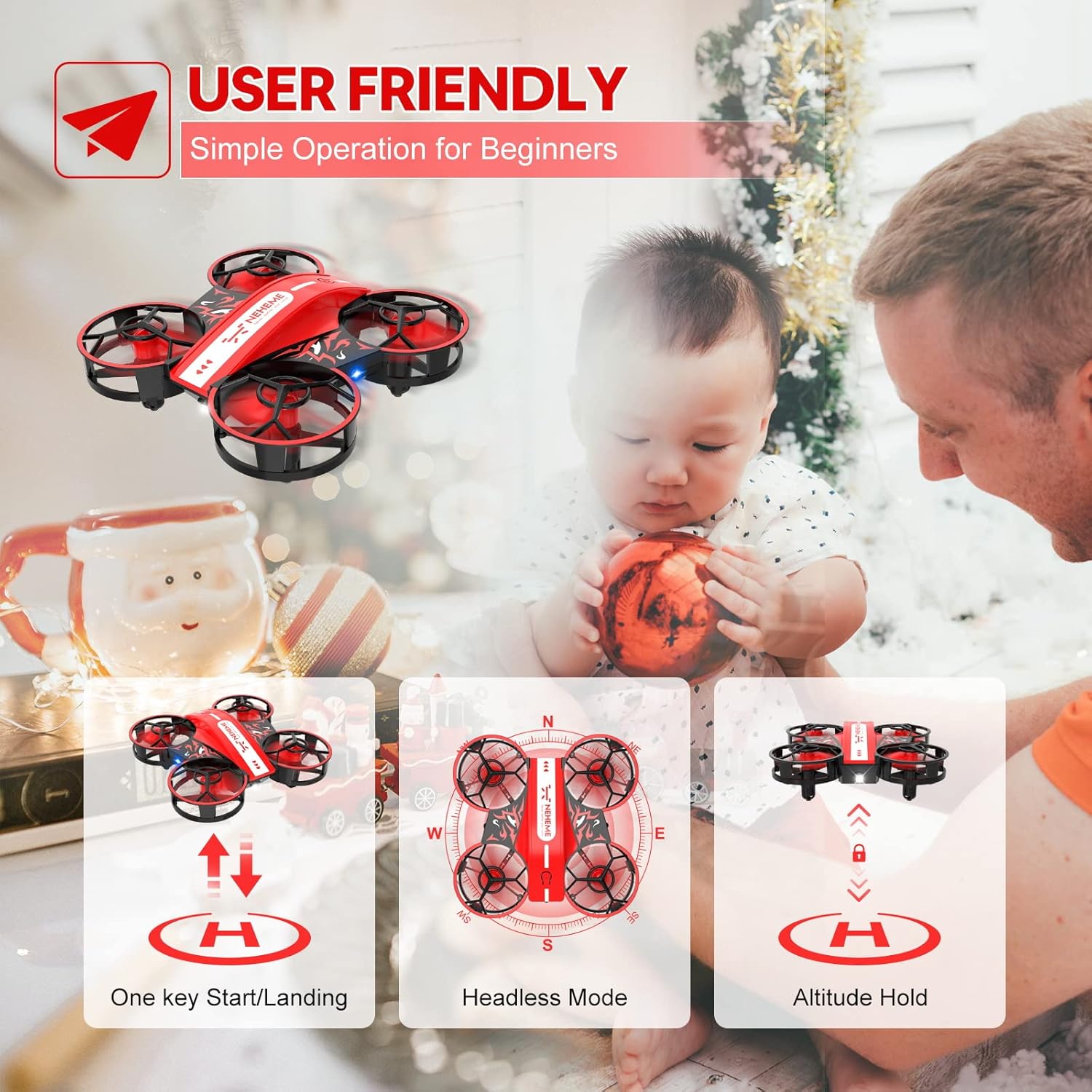 Easy To Fly: Gently toss the mini rc drone into the air to quickly take off. With altitude hold, headless mode, emergency stop functions, super easy to control even for kids, beginners, newbies, etc.