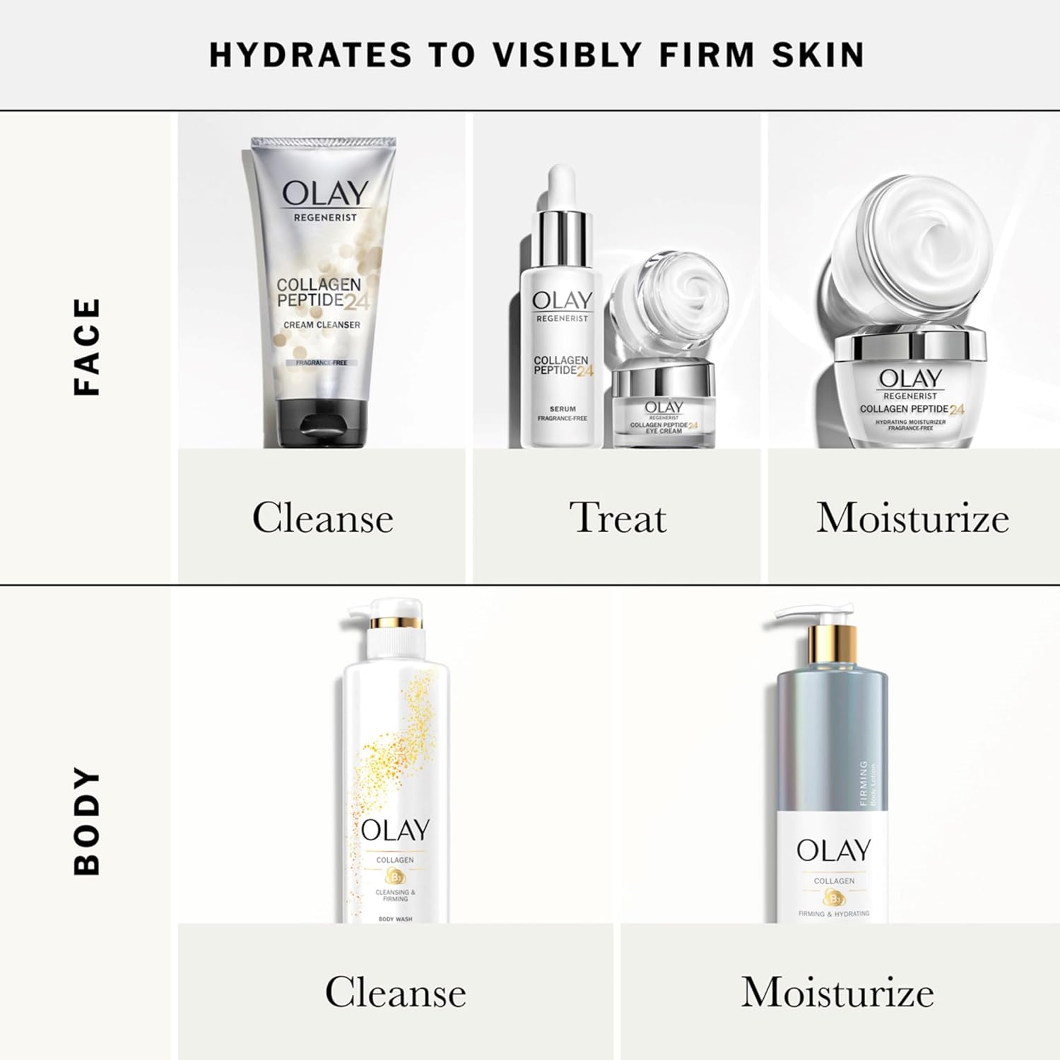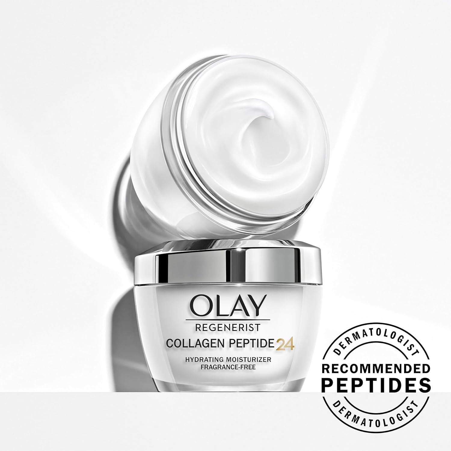 OLAY Regenerist Collagen Peptide 24 face moisturizer delivers plumping moisture and transformative Collagen Peptide in a fragrance-free hydrating face cream.