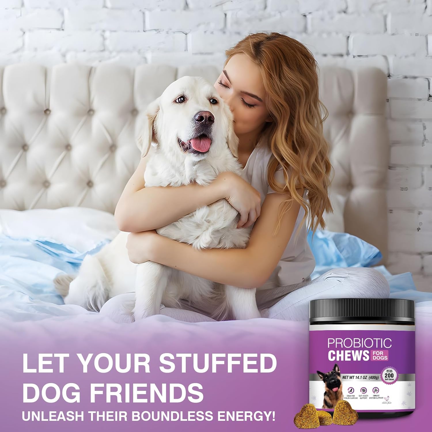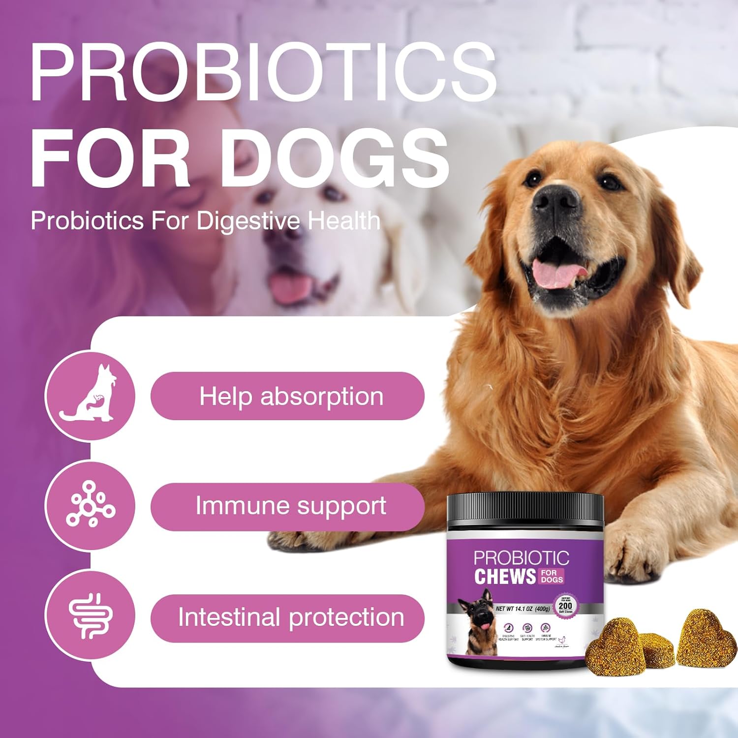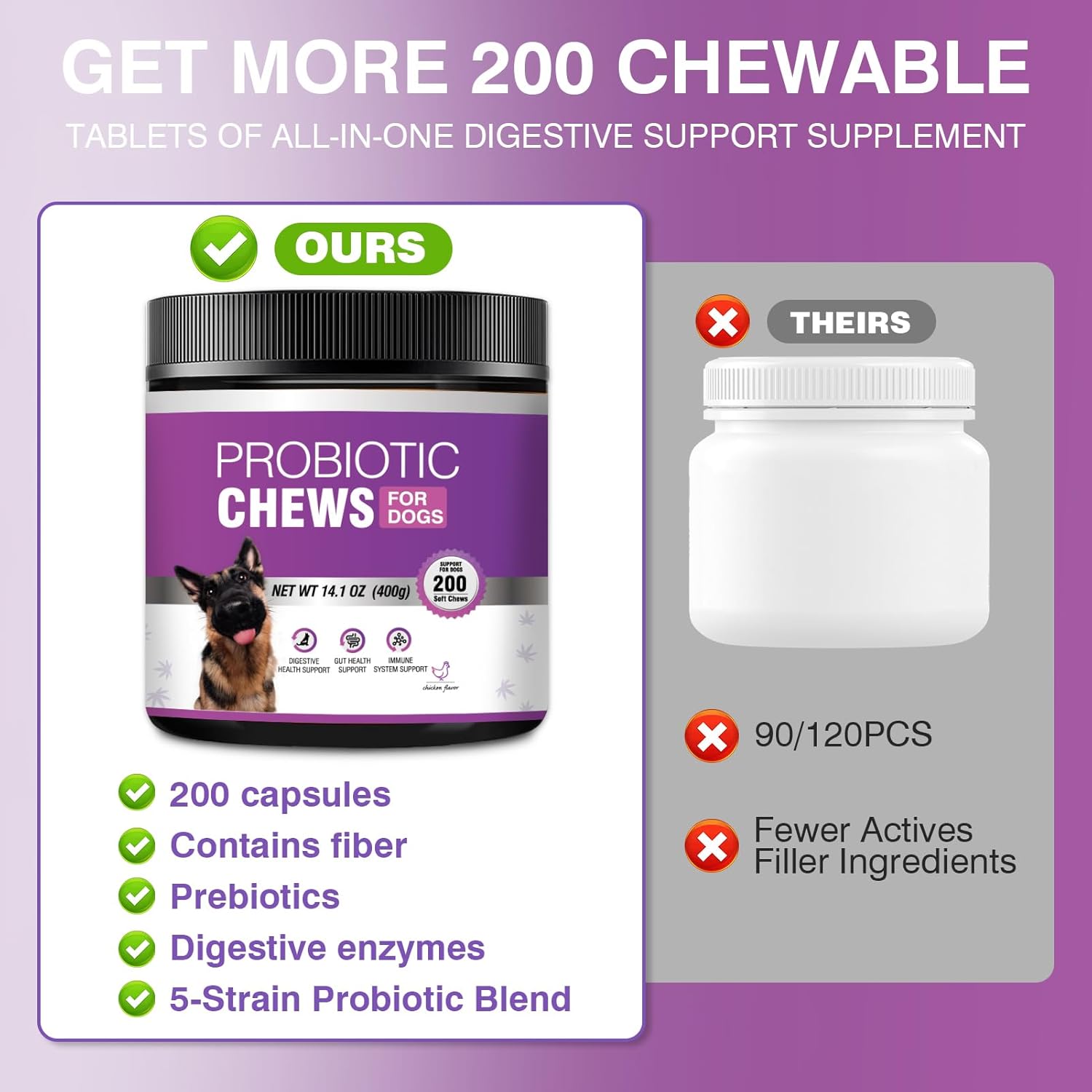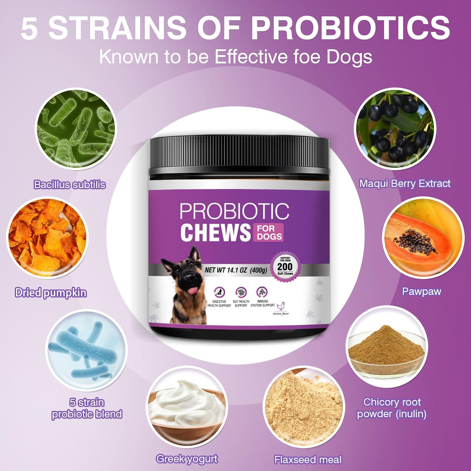 Probiotics for Dogs Dog Probiotic Chews and Digestive Enzymes Prebiotic Health Gut Itchy Skin Probioticos Itching Diarrhea Chew Supplements Canine Pet Prebiotics 200 Natural Soft Chewable Tablets