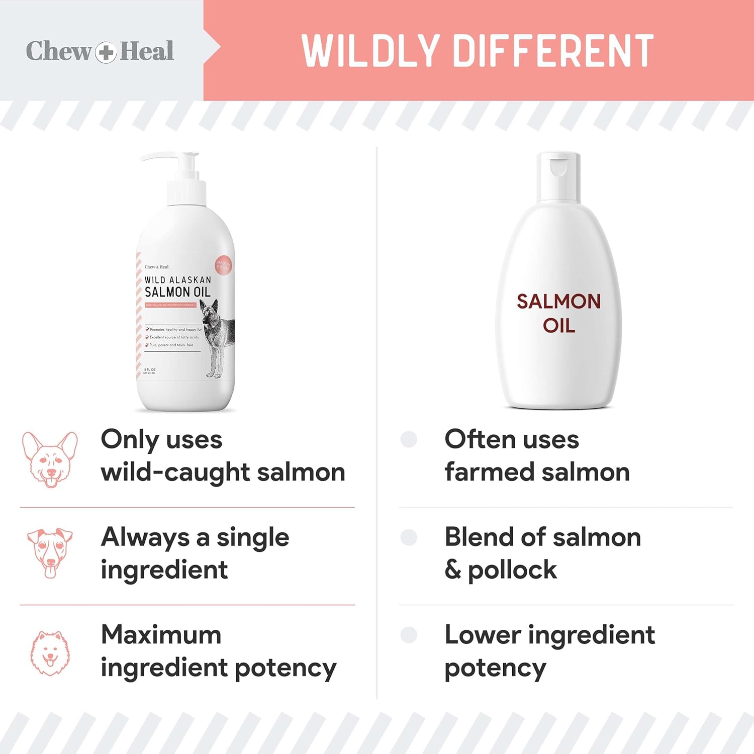 Chew + Heal Wild Alaskan Salmon Oil is made without additives and preservatives. The only ingredient in this product is pure Wild Alaskan Salmon Oil, making it a great, all-natural option.