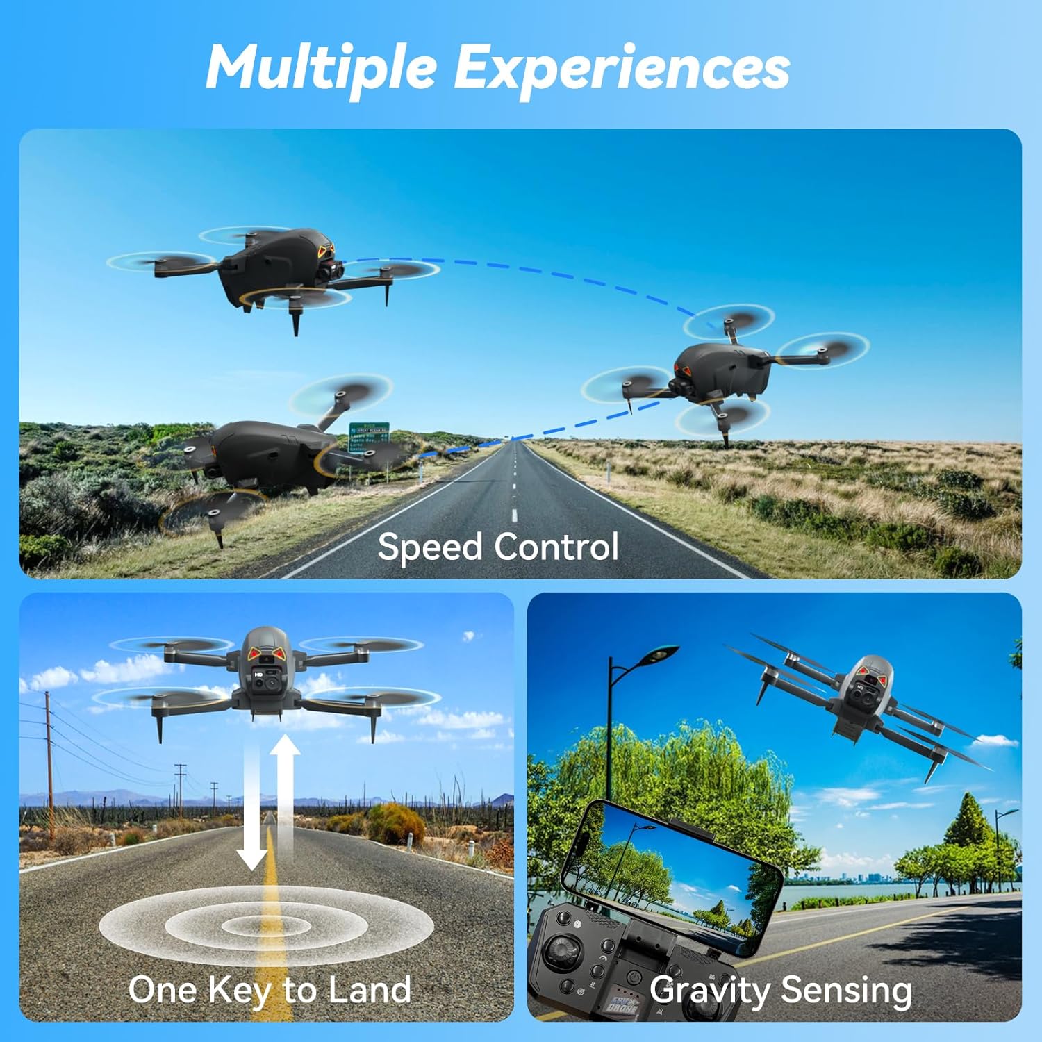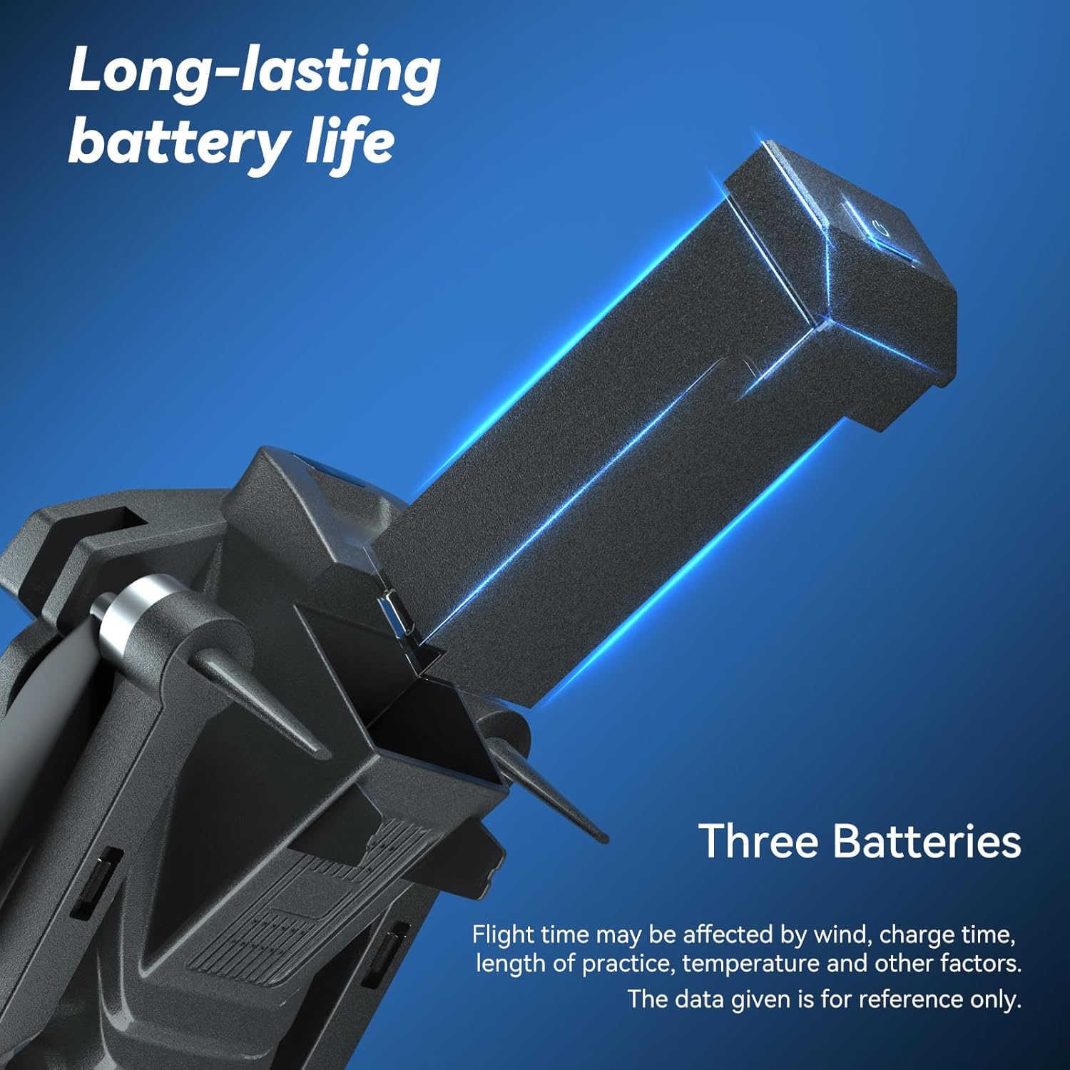 【Easy Control】The drones for adults can support one-button takeoff/landing, with 2000mAh x 3 replaceable batteries, the flight time up to about max 36-40 minutes. If you turn on the obstacle avoidance function when flying indoors, a prompt will sound when it detects the inability to fly, and the drone will slow down and back up.