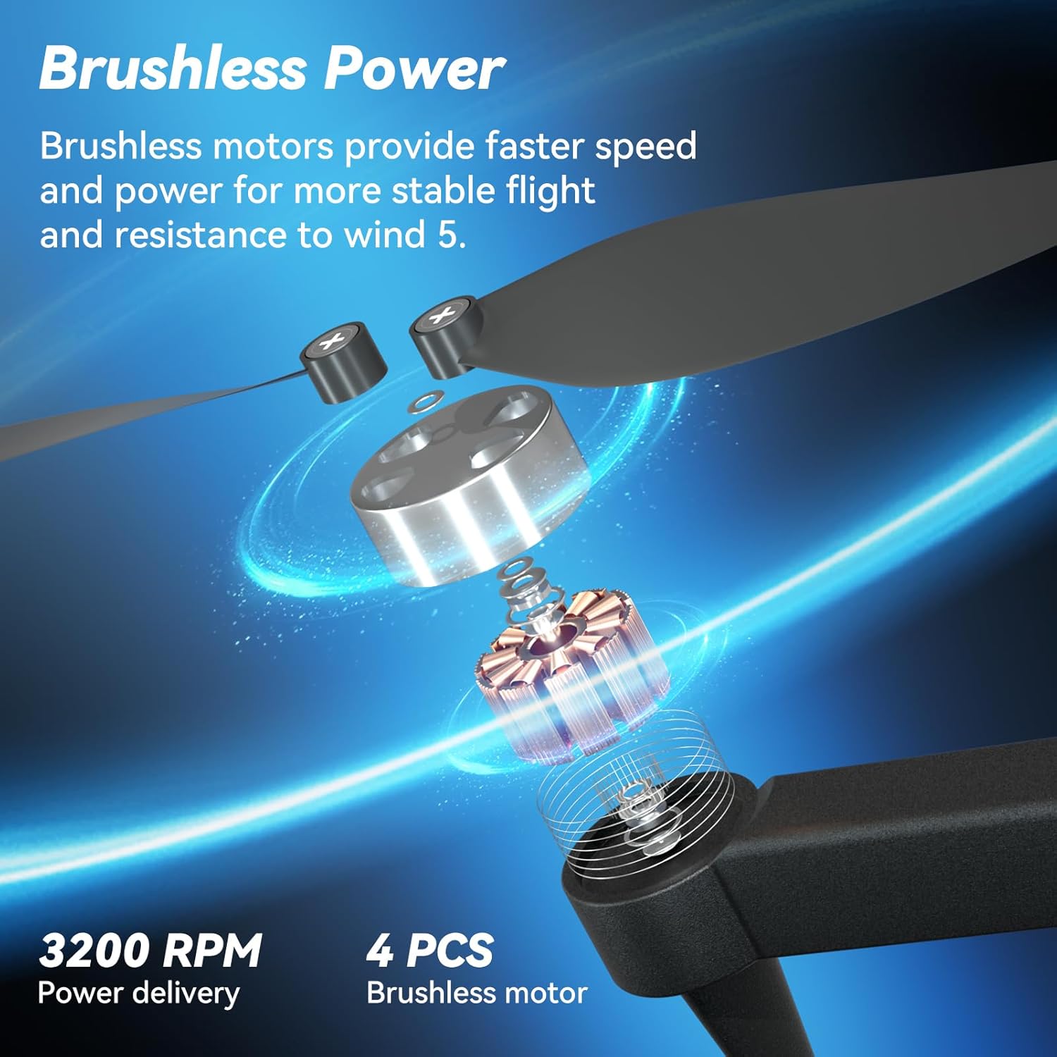 【Powerful Motor】Lightweight, only 173g. Compared with brushed motors, the drone with camera is equipped with brushless motors that have a longer lifetime, higher speed and more stable flight. Compact and smooth design allows the S177 drone to fly in a easy way, especially suitable for beginners and kids to learn to fly the drone.
