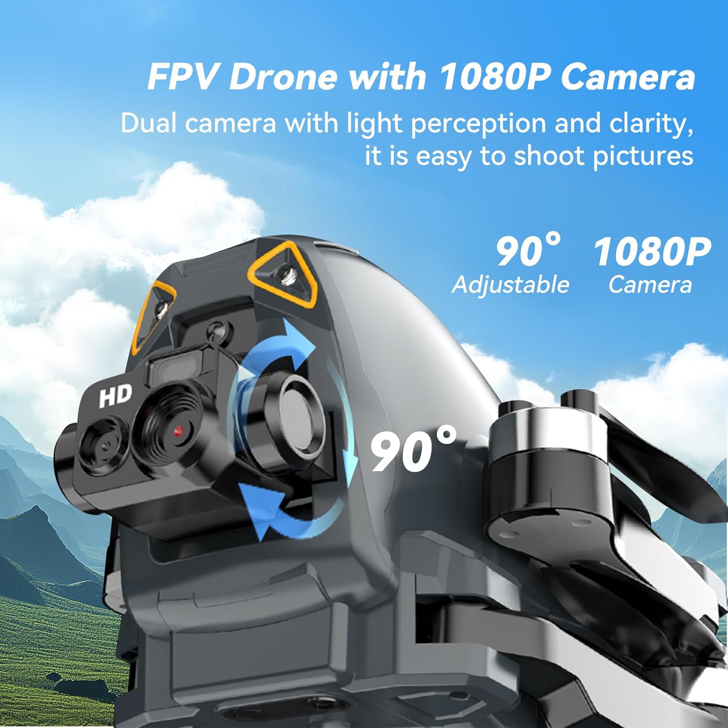【1080P Camera】S177 FPV drone supports 1080P photos and videos, 120° wide angle combined with 90° adjustable motorized lens, you can switch between different shooting angles through APP and remote control to experience a different visual landscape.