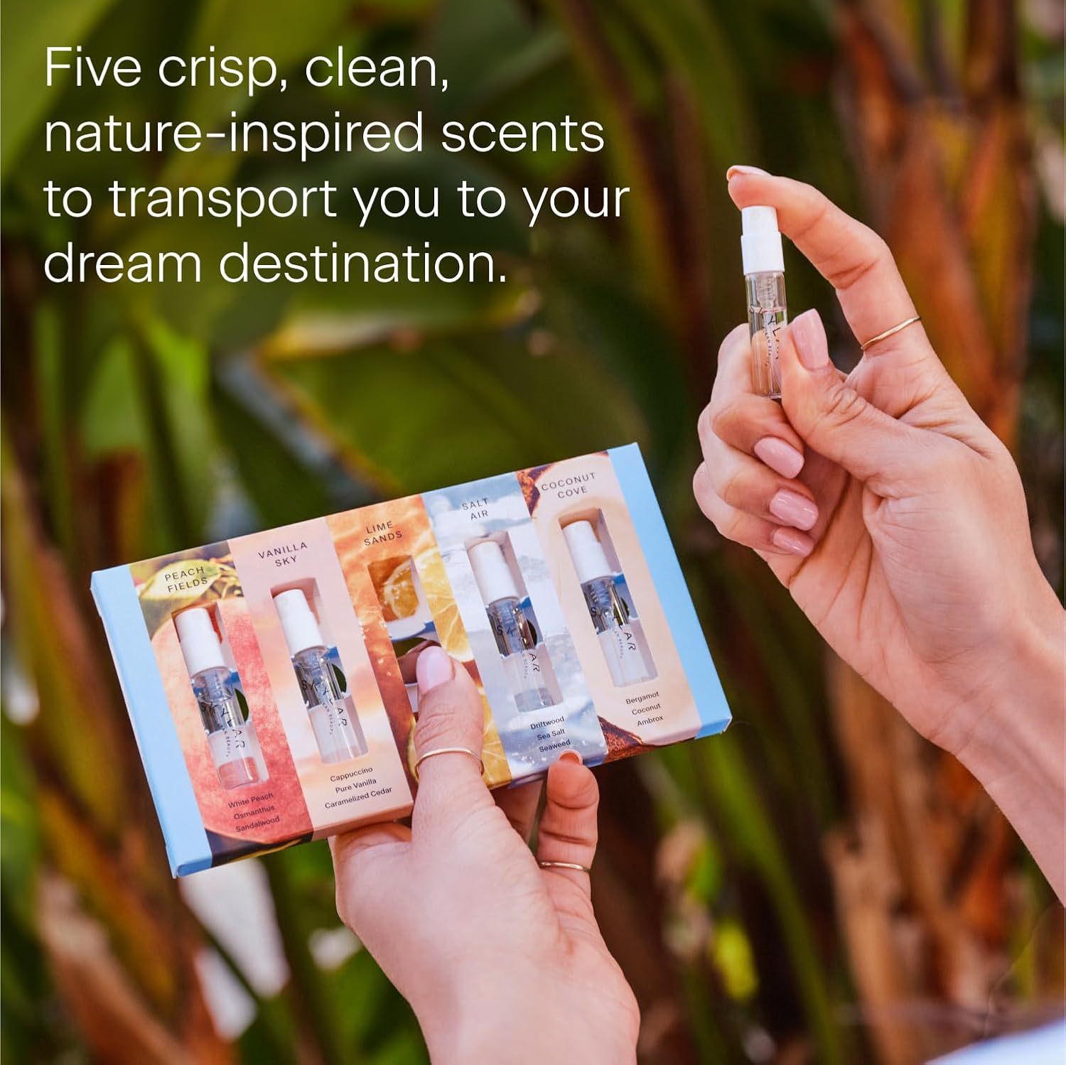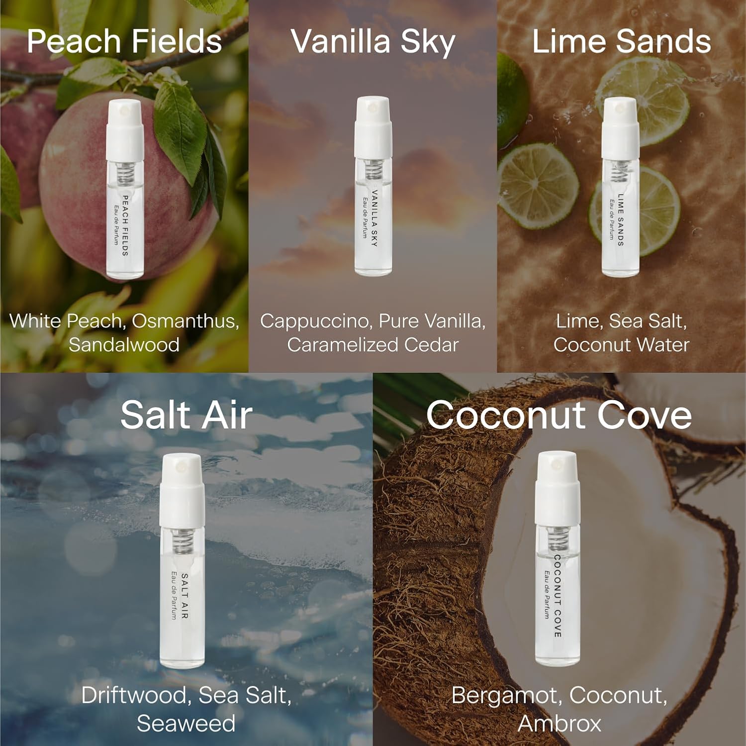 Skylar Perfume Discovery spray Sampler Set – Peach Fields, Vanilla Sky, Lime Sands, Salt Air, Coconut Cove – Hypoallergenic & Clean Perfume for Women & Men – 5 1.5mL