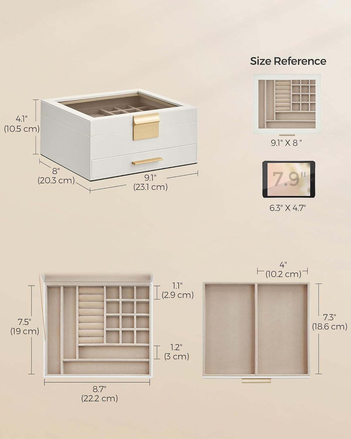 [Clear Glass Lid] The see-through glass lid of this jewelry organizer allows you to see and find your favorite jewels at a glance while protecting them from dust, keeping your jewelry ready to wear and clean