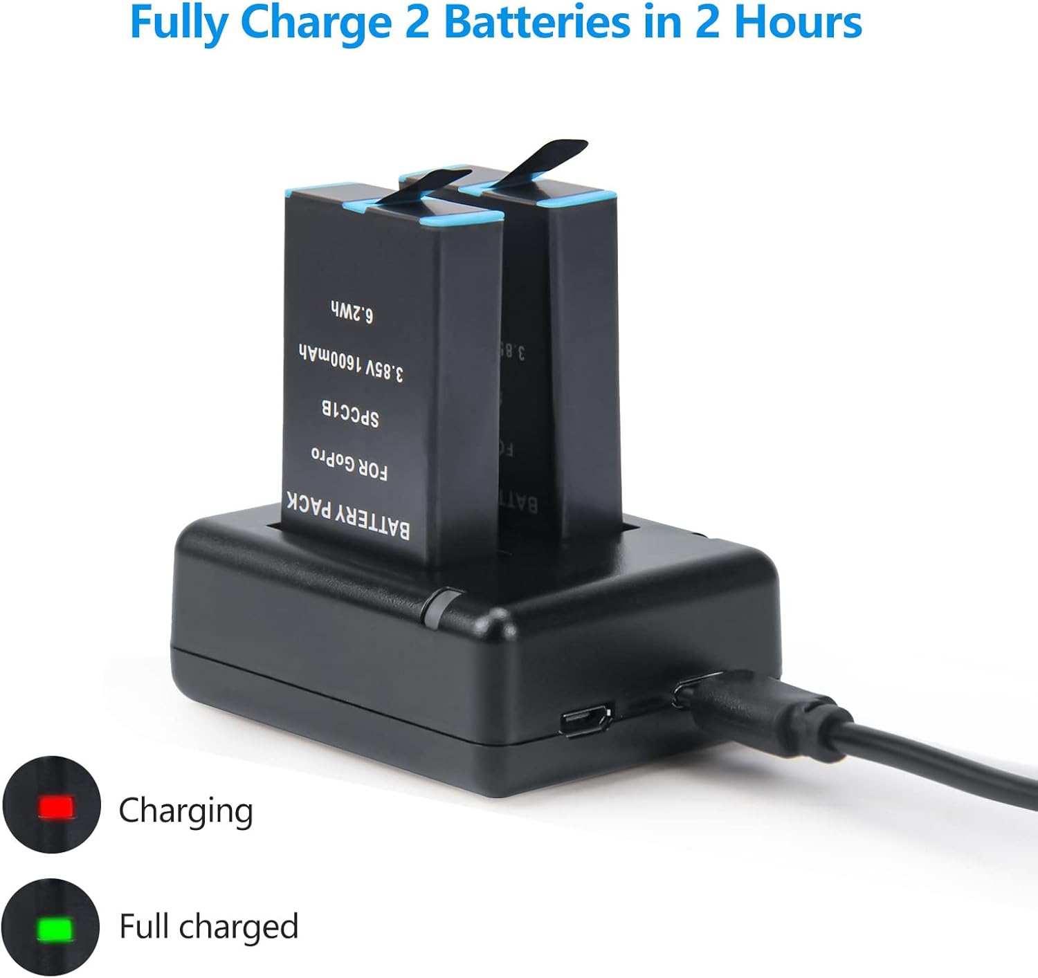 【Smart charger for Gopro Max】: 2-channel unique and compact Charger designed for Gopro battery, can charge 2-Pack REYTRIC Max batteries (also compatible with GoPro Max 360 battery) simultaneously and independently from 5V 2A max USB power source, reduce the need for multiple charges. Red for charging, Green for charging completed.