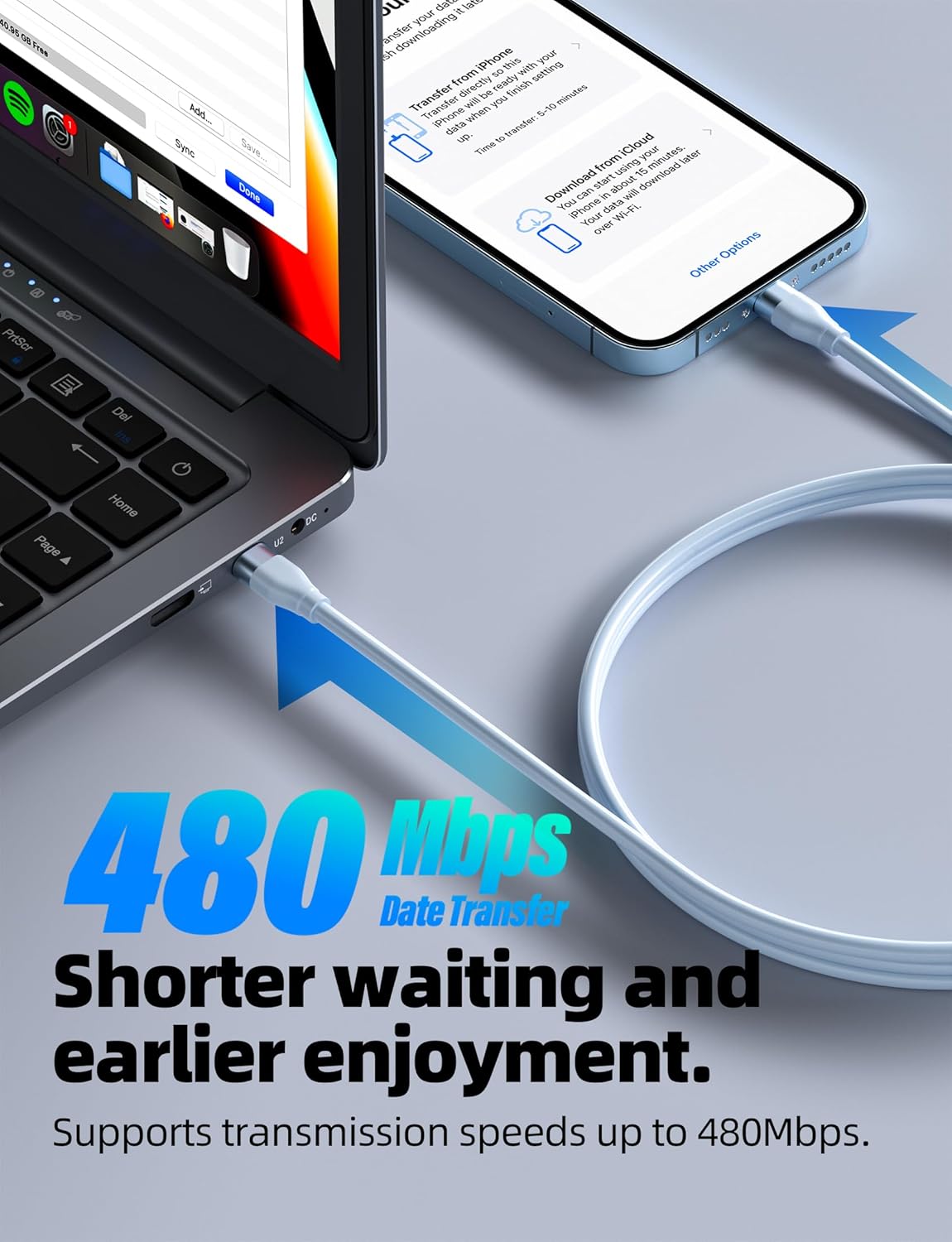 🎊【PD Fast Charging and Data Transfer】: The USB C to lightning cables support power delivery fast charging for iPhone 14,13, iPhone 12, 12 Pro, 12 Pro Max, 11, 11 Pro, 11 Pro Max. It also supports data transfer speeds of up to 480Mbps Note: You will need a USB-C port wall charger for fast charging
