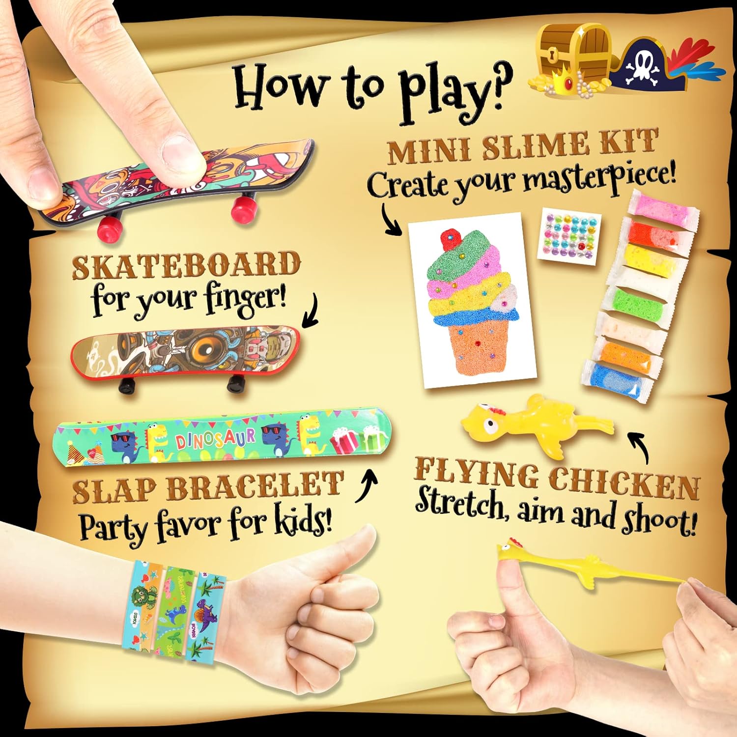【Treasure Box Designed】The packaging box is designed to look like a treasure box, It would be a perfect gifts for classroom prizes, classroom rewards,pinata filler, goodie bag fillers, treasure box prizes, carnival prizes for kids, party favors assortment for boys and girls, party giveaways, prize box toys, treasure chest toys, etc. Kids will be excited to get it and enjoy these prizes and toys for a long time.