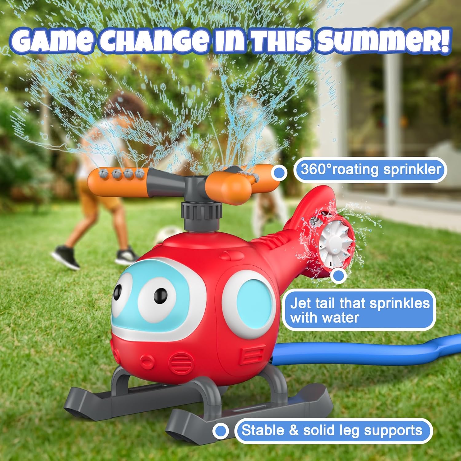 【Game Changer for Summer Outdoor】 This helicopter sprinkler toy is a great addition for your backyard. It’s sure to bring excitement to any outdoor activities, this spining t-ball sprinkler will be a hit for everyone in your family, your dogs and pets will love it too!