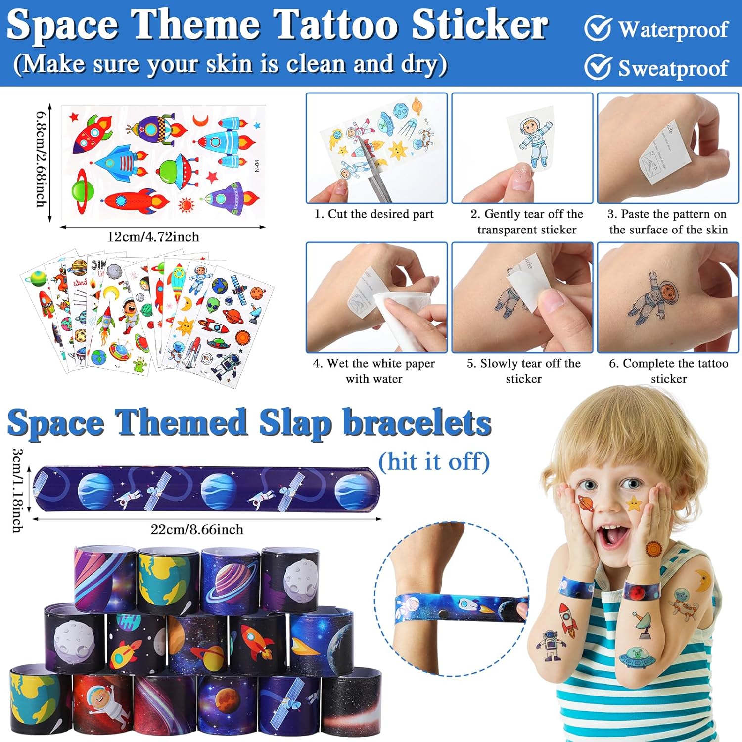 Our waterproof temporary tattoo stickers can be easily applied and removed with water in a short period of time, so you can use the tattoos of the space birthday party favors with convenience and ease.