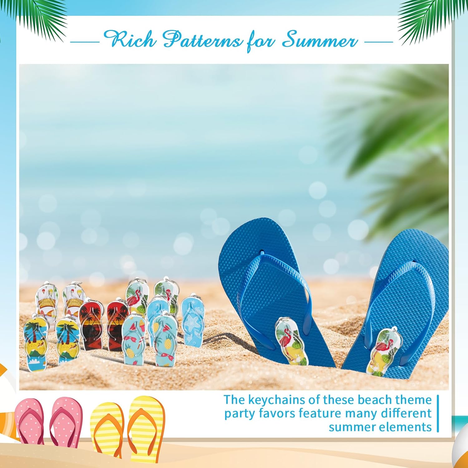Rich Summer Patterns: the keychains of these beach theme party favors feature many different summer elements such as flamingos, starfish, beaches, coconut trees and sunset by the sea; Each keychain brings a different summer atmosphere to your beach trip