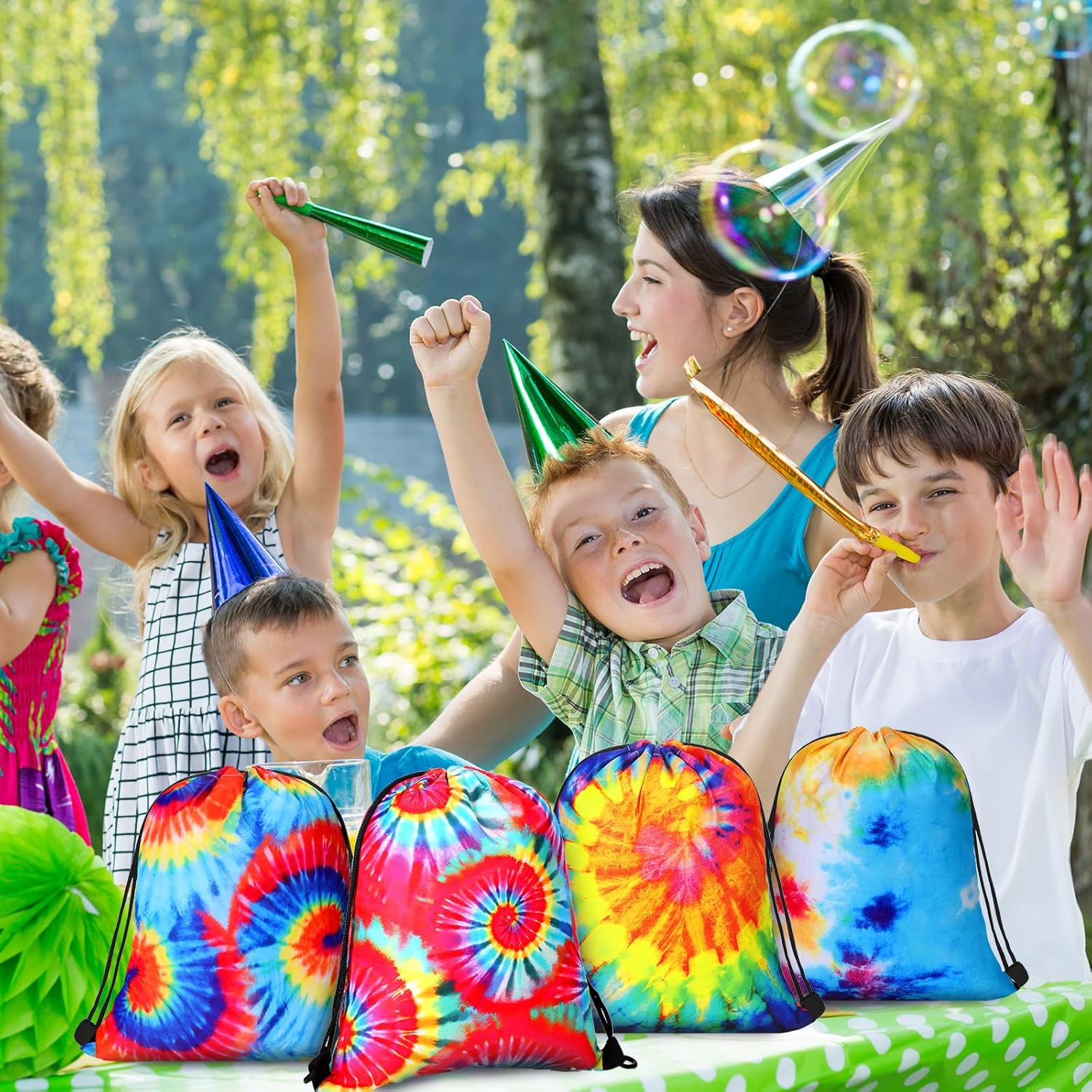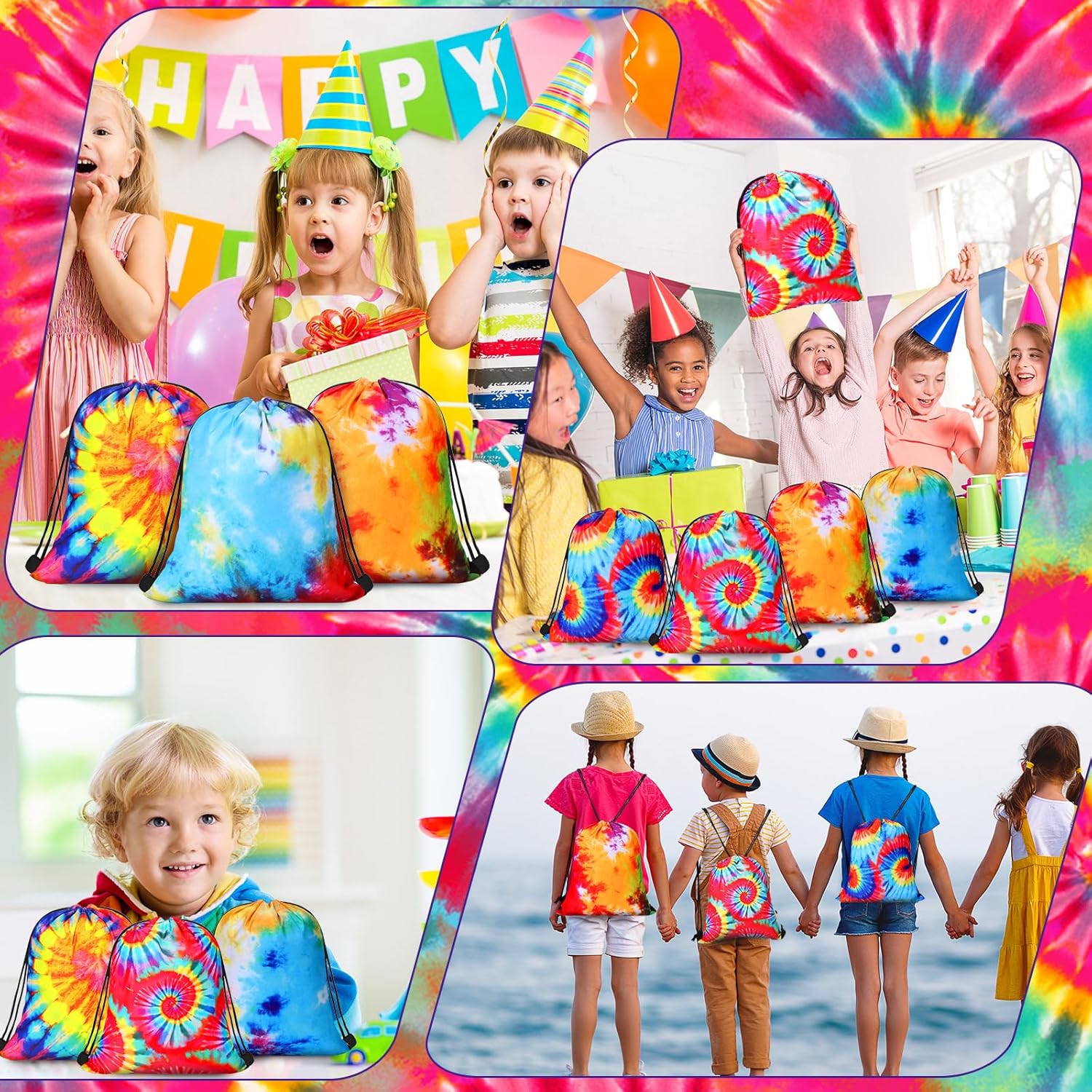 Summer Tie Dye Theme Drawstring Bags: the cute tie dye drawstring bags come in a set of 24, with 6 tie dye different styles, allowing you to choose the suitable 1 for various occasions; Its classic tie dye patterns are dreamy and multicolored, creating a vibrant and eye catching look that will attract your guests and make your summer party special