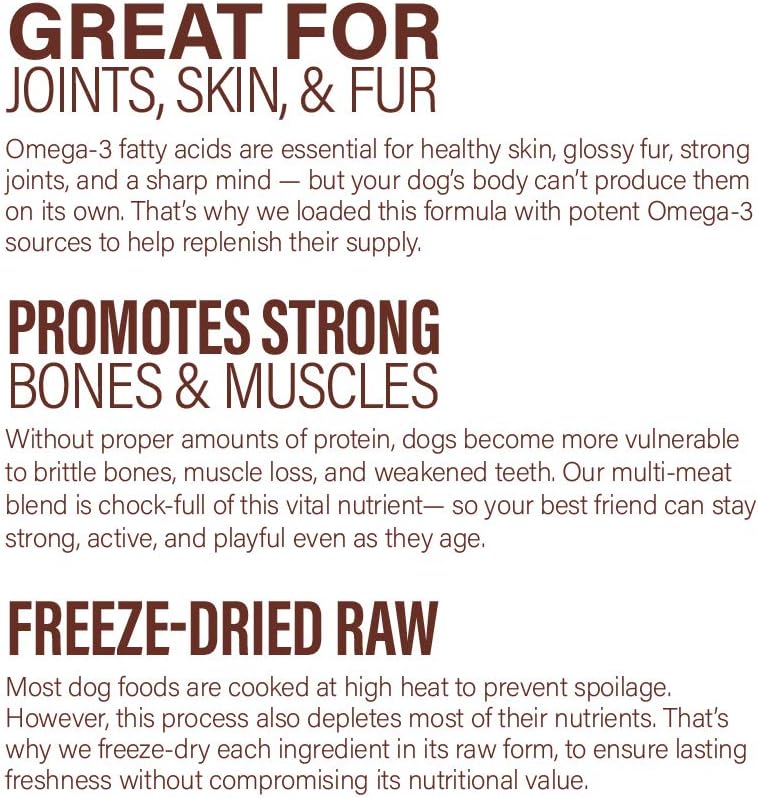ALL NATURAL – Our meal is made from pure, natural ingredients, which are freeze-dried raw in their natural form — without fillers, grains, or cereals. It’s nutrition, as nature intended.
