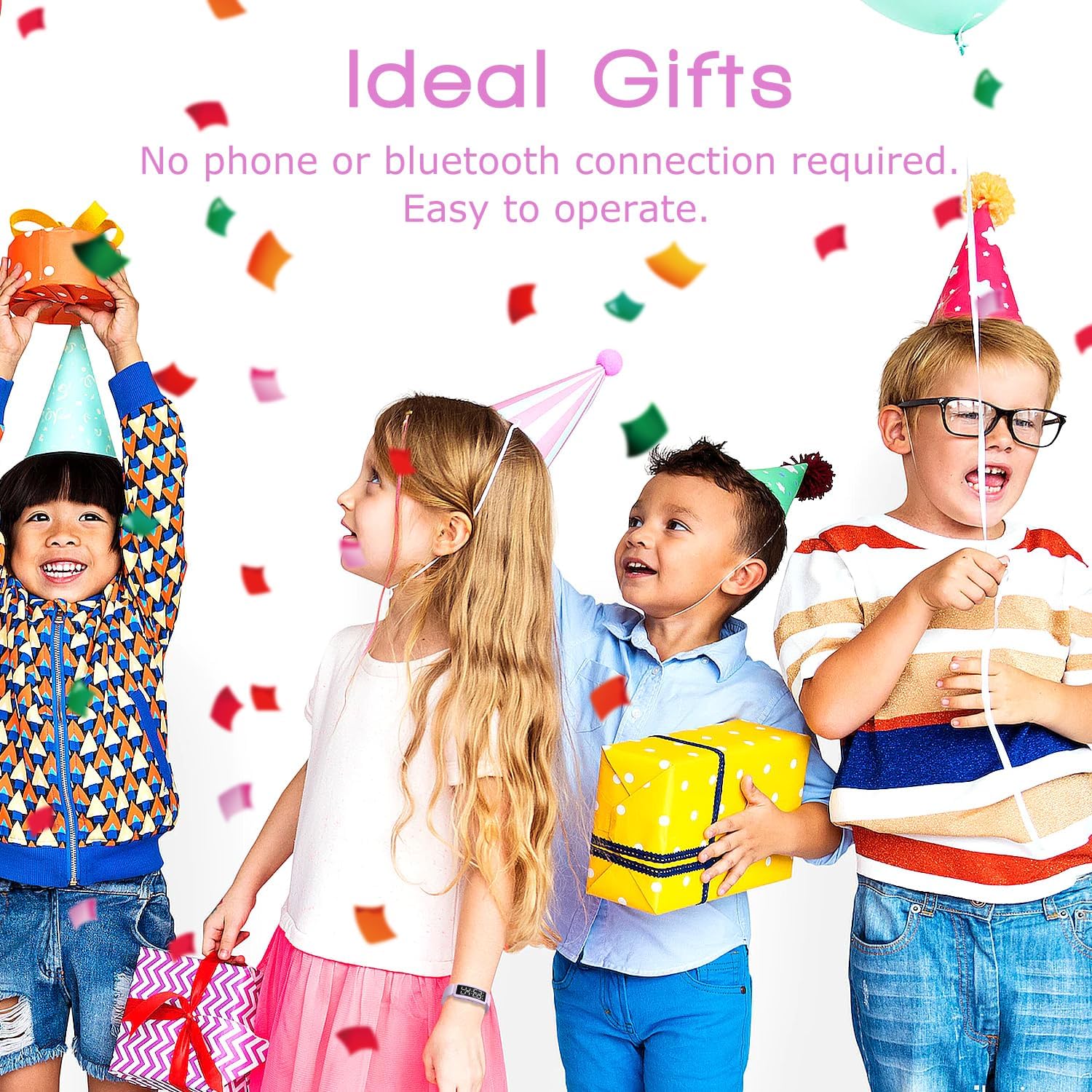 【Fitness Tracker Kids Watch】Worried about it being difficult for kids to use? Our fitness watch does not need to be connected to a mobile phone, bluetooth, or to download an APP. Just put on the watch and it can be intelligently tracked, counting steps, timing, calories, and mileage.