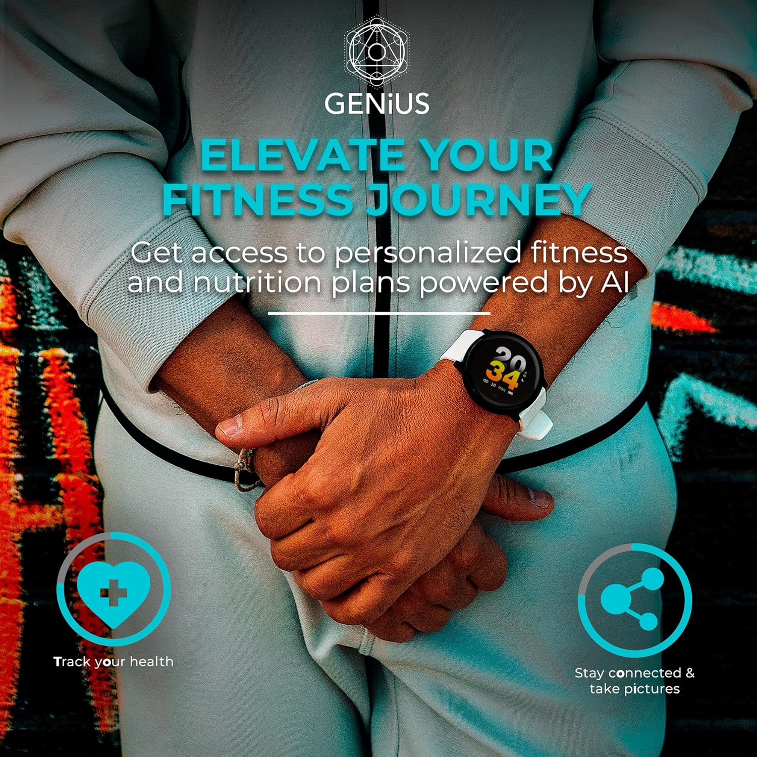 Personalized Fitness and Nutrition Plan—By syncing your Smart Watch for Android Phones or iOS, you can elevate your fitness journey with personalized training guidance and nutrition powdered by IA, in-depth analytics, and valuable health insights through the user-friendly Genius Trainer app. Enjoy our new Yoga guide, Home Training, Intermittent Fasting Plans, and more with your watch.