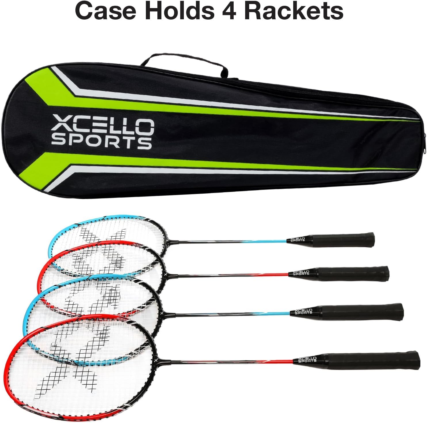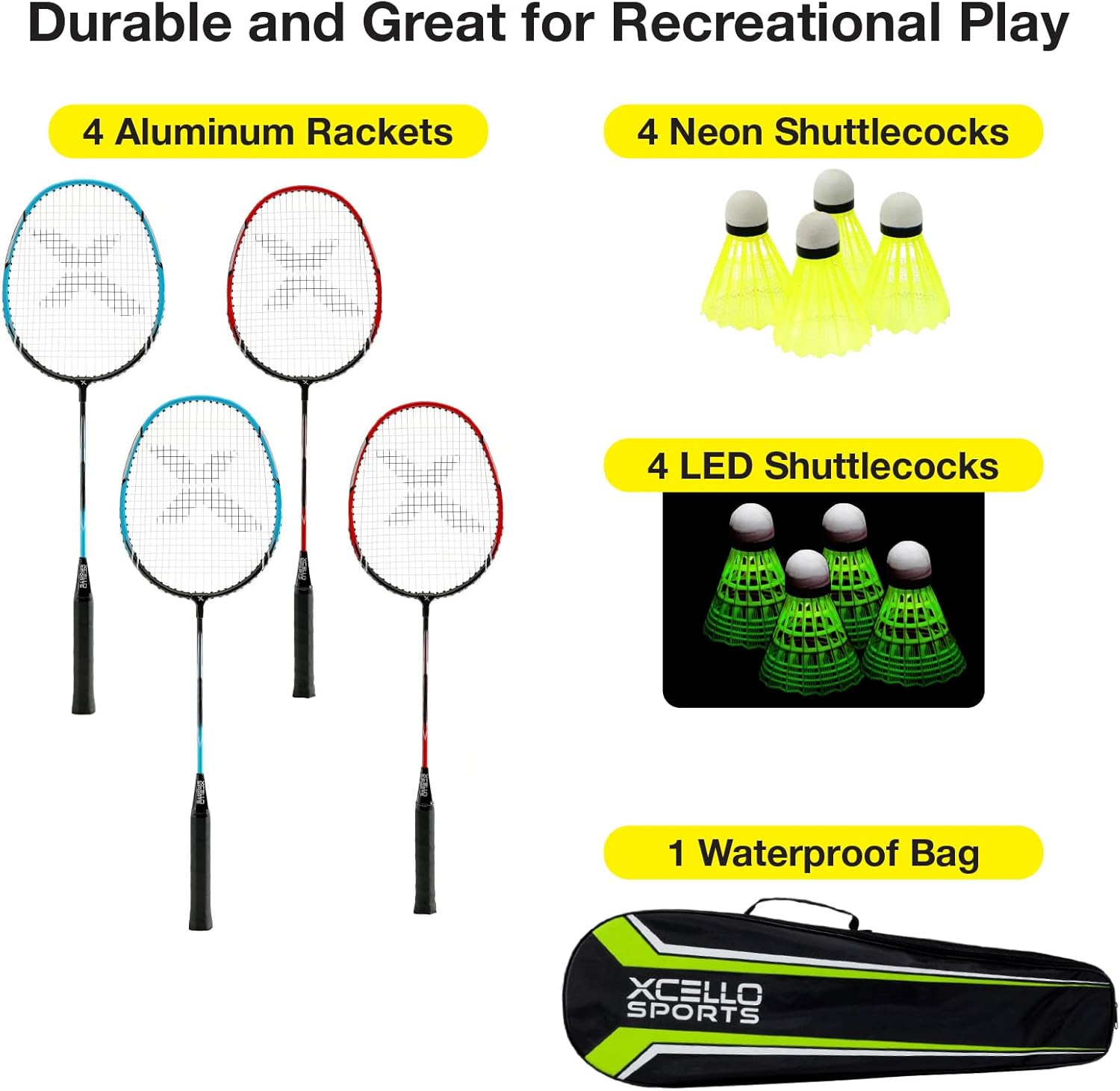 Badminton Racket Set – 4 Rackets, 8 Shuttlecocks (4 Neon Yellow and 4 LED), Carry Bag