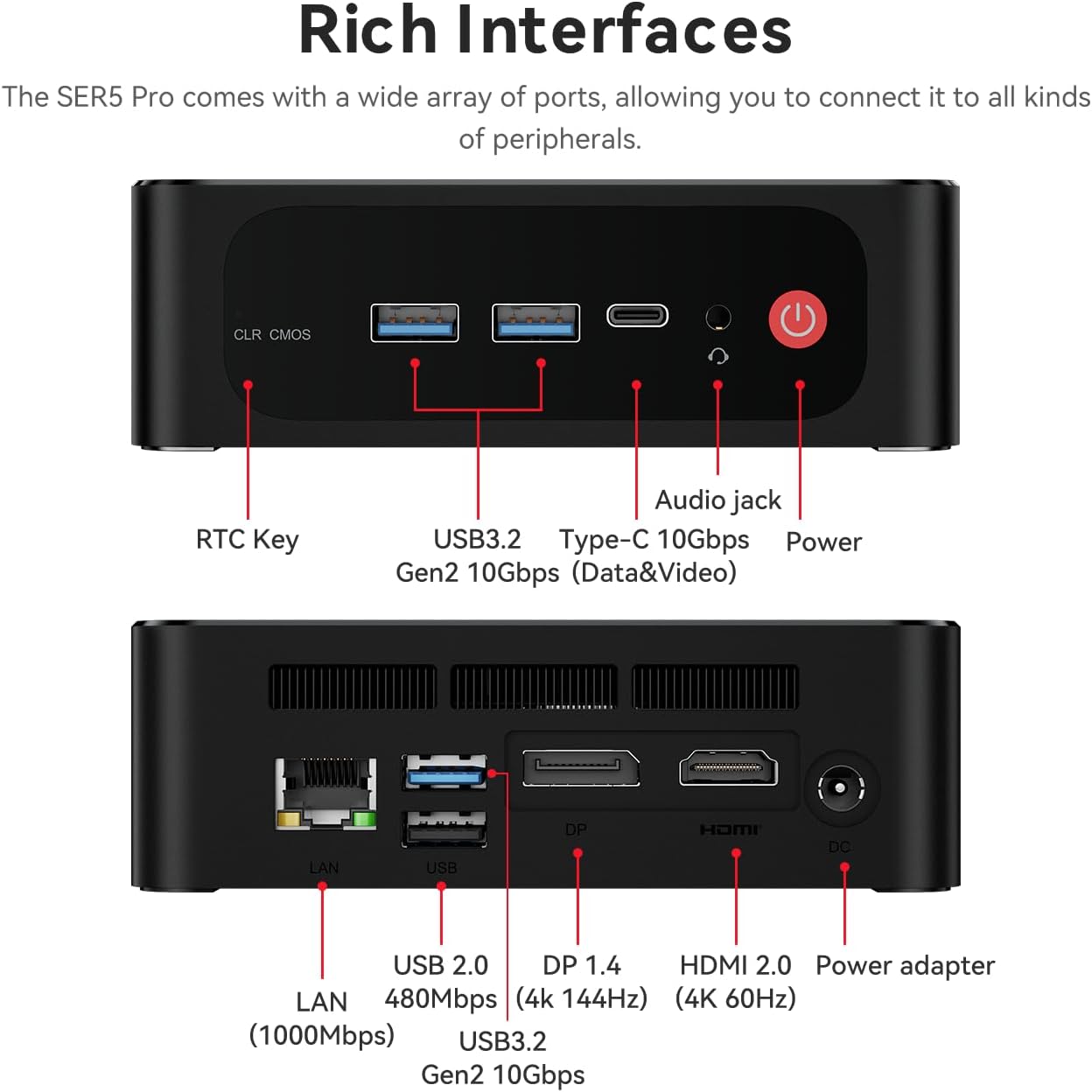 【4K Triple Display & New OS 】Beelink SER5 mini pc equips AMD Radeon Graphics 8core 1900 MHz, and high technically supports 4K Triple Display, one HDMI 2.0, one DP 1.4 and one Type-C. Sharing happiness with your family, lover, and friends. This Mini Computer comes without bloatware so that you can enjoy the latest version of OS.