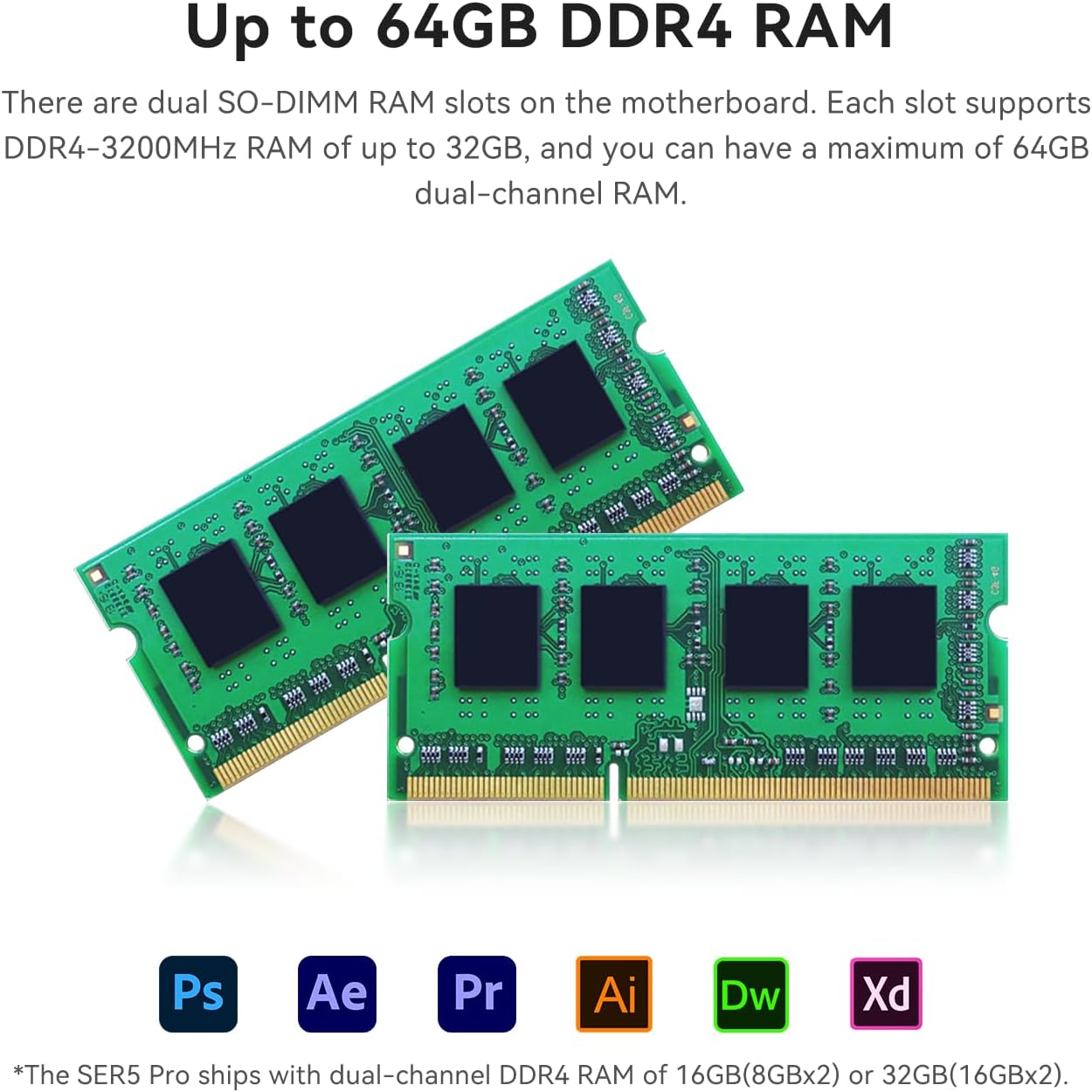 【Large memorry,Support your own upgrade】Beelink micro pc has built-in 16GB DDR4 3200MHz memory, supports up to 64GB memory, through 2*32GBDDR4 3200MHz (not included). Built-in 500GB M.2 2280 NVMe SSD, maximum support 2TB. You can also expand the storage up to 2TB by installing a SATA HDD (2.5in 7mm) (not included).
