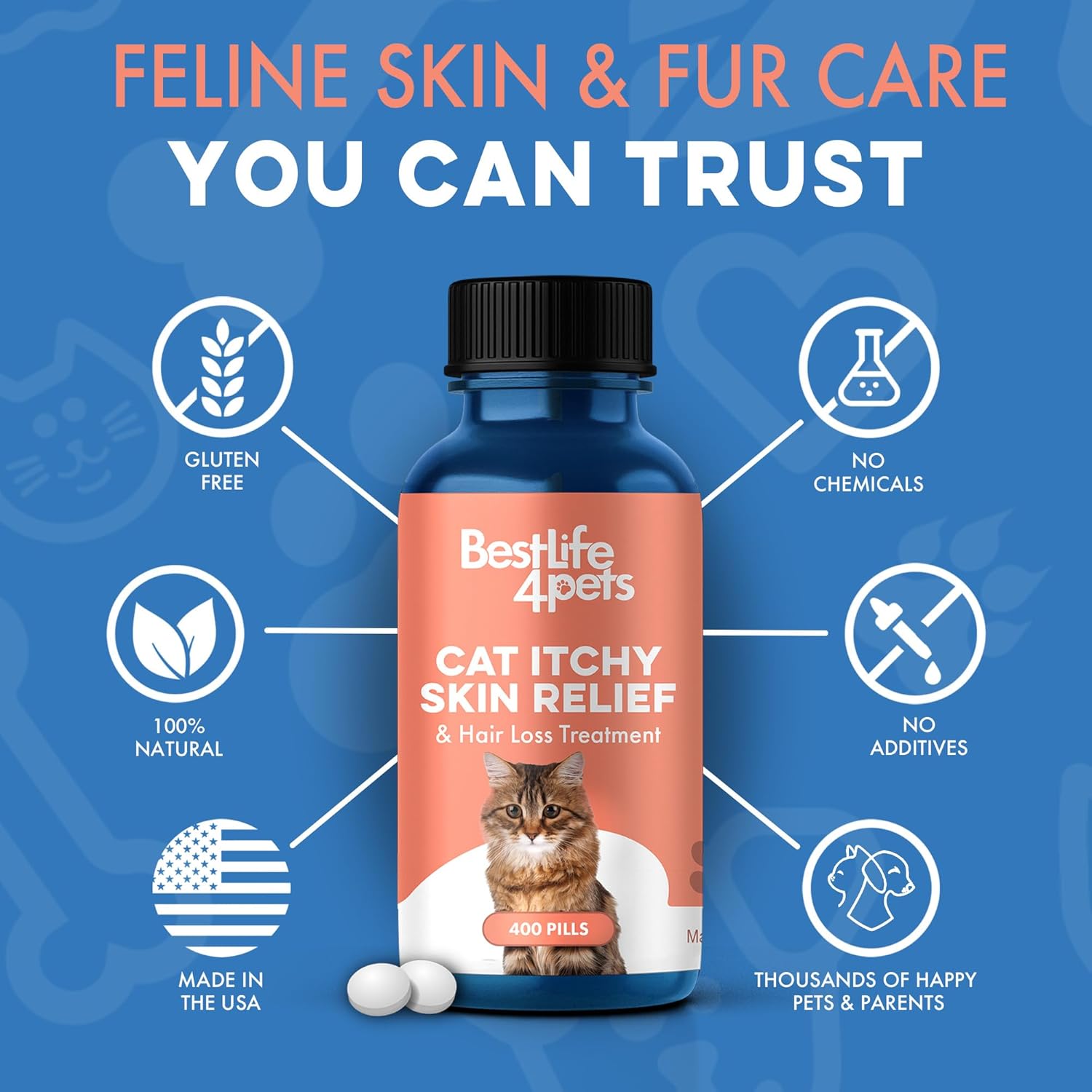 ALL-NATURAL FORMULA: Unlike other pet supplements that contain artificial chemicals and sugars, our homeopathic remedies are safe and effective. All of BestLife4Pets products are 100% natural, gluten-free, and non-GMO. You can buy confidently knowing that our Cat Itchy Skin Relief & Hair Loss Treatment formula is made entirely with intentionally blended natural plant compounds.