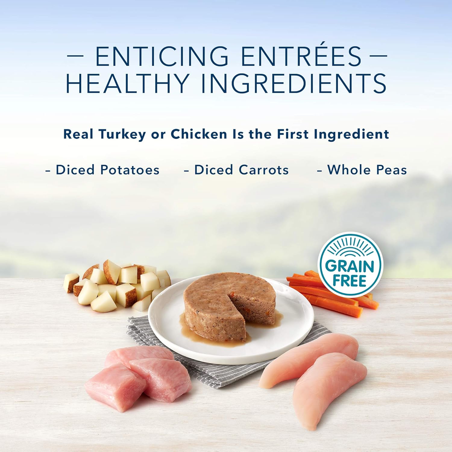 REAL TURKEY OR CHICKEN FIRST: These grain free wet dog foods features high-quality protein from real turkey or chicken to promote healthy muscle maintenance while supporting the higher energy needs of small breed dogs