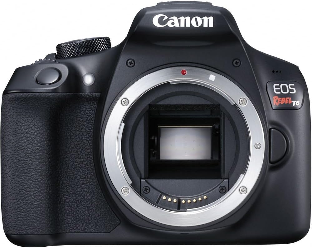 Canon EOS Rebel T6 DSLR Camera with 18-55mm Lens (1159C003) + 64GB Memory Card + Card Reader + Case + Flex Tripod + Hand Strap + Memory Wallet + Cap Keeper + Cleaning Kit (Renewed)