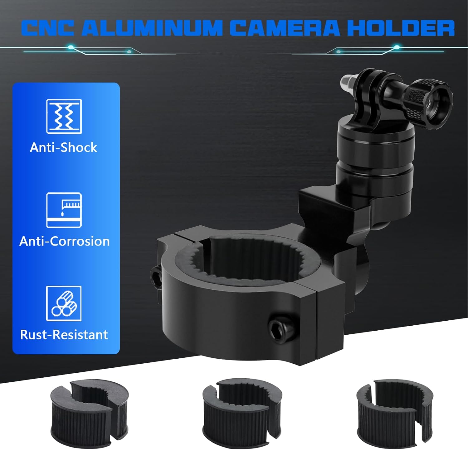 Chelhead Camera Mount Holder UTV ATV, Universal Fits 1” 1.5” 1.75” 2” Tube Camera Mount Clamp Compatible with oPro Hero, SJ, DJL, Insta360