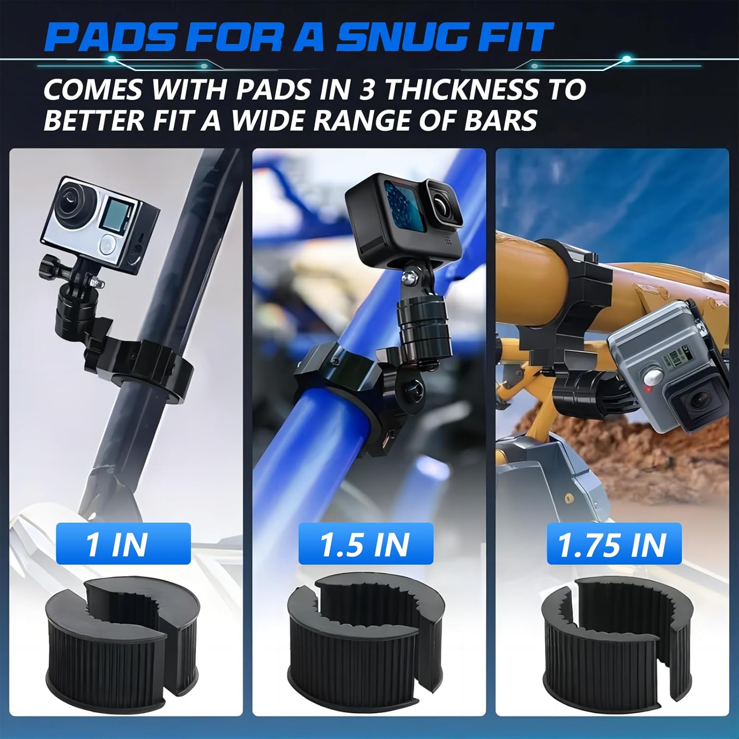 Universal Fit 1″ to 2″ Bar: Compatible with a wide range of cameras including GoPro Hero, SJ, DJL, Insta360, and more. Fits 1″-2″ roll bars on UTV, ATV, Polaris Can-am, Kawasaki, Yamaha, motocross bikes, and boats.