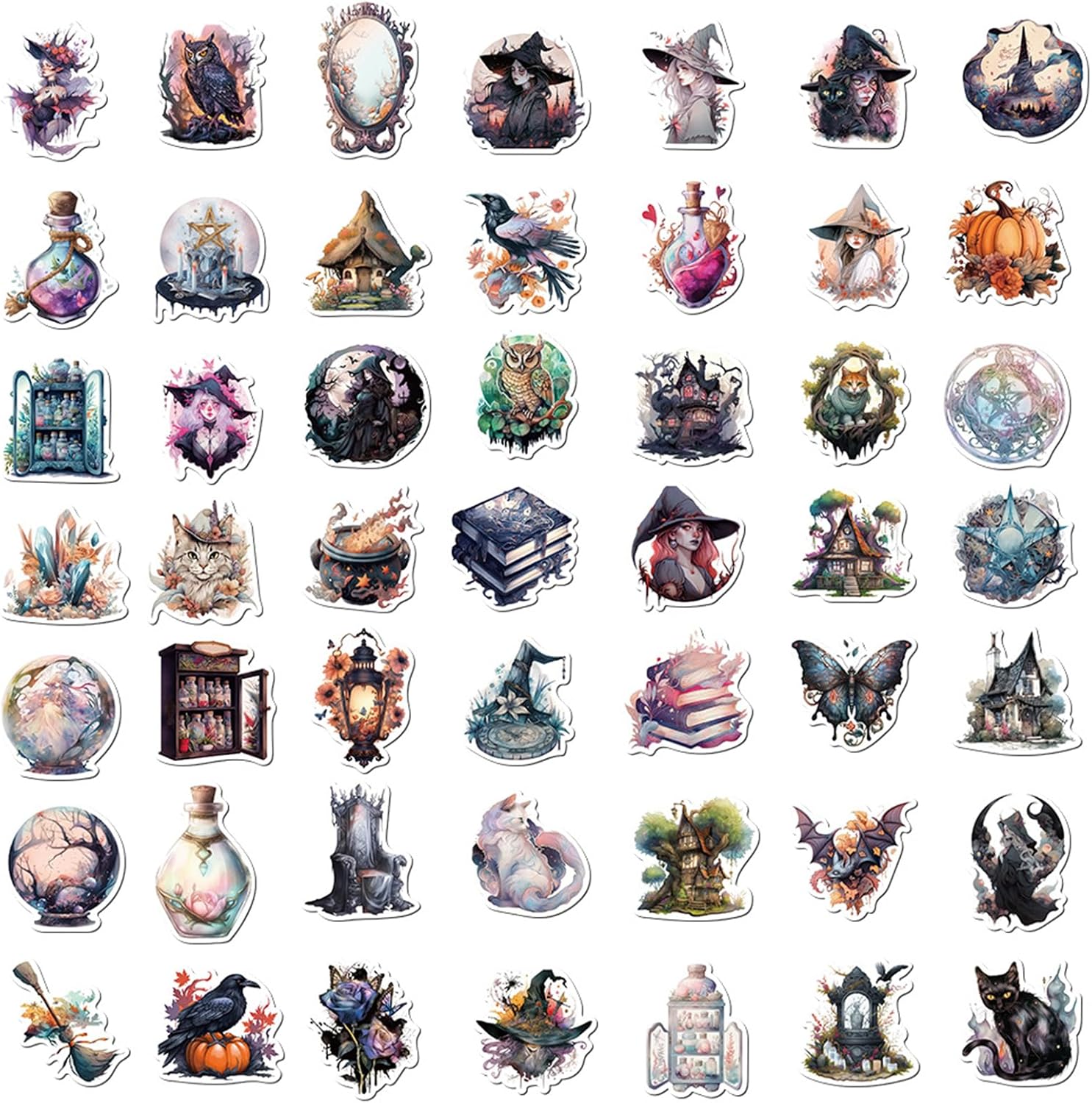 Cool Witch Stickers for Kids, 50pcs Aesthetic Waterproof Stickers,Vinyl Stickers for Teens and Adults, Witchy Gifts, Witch Gifts, Witch Party Favors, Witchy Items