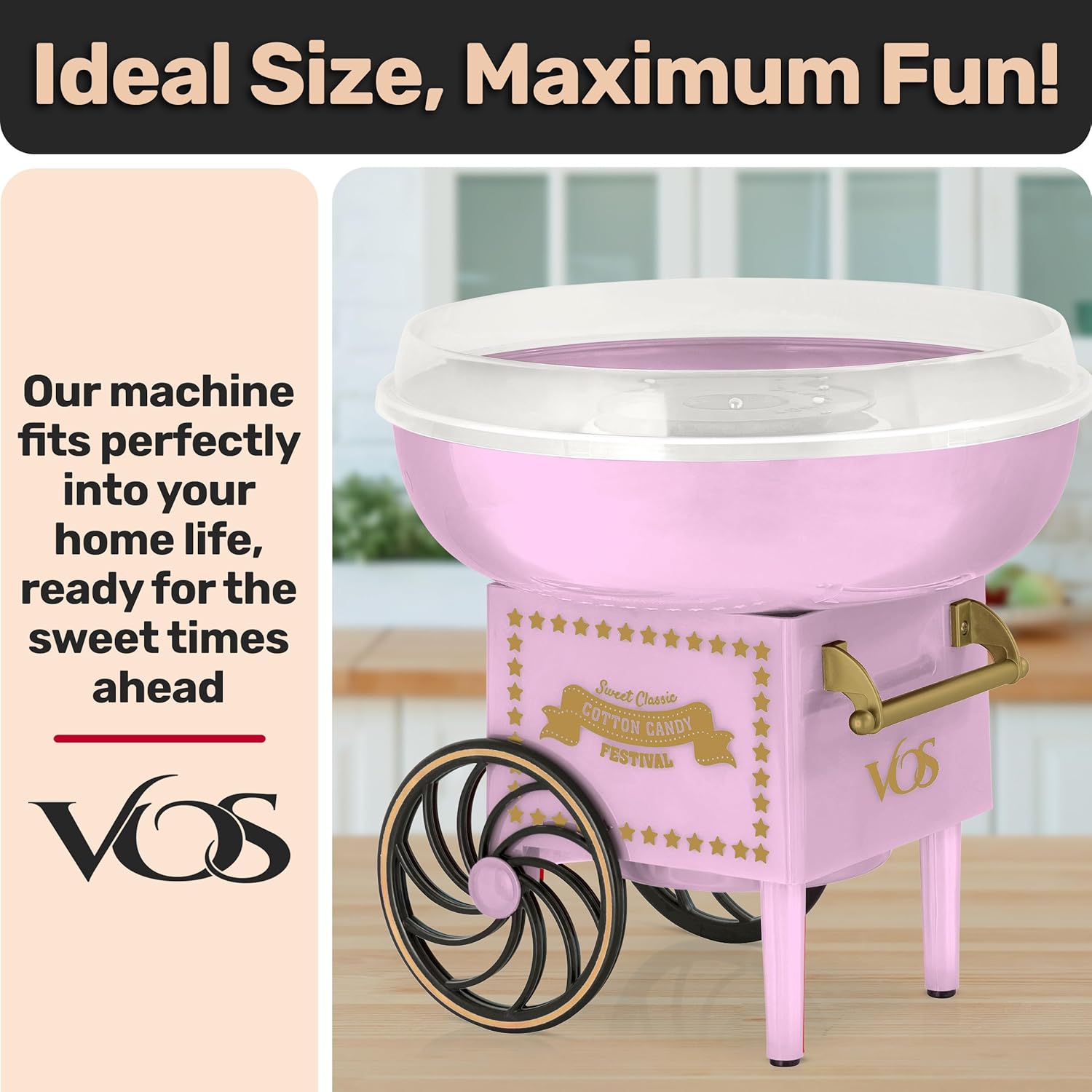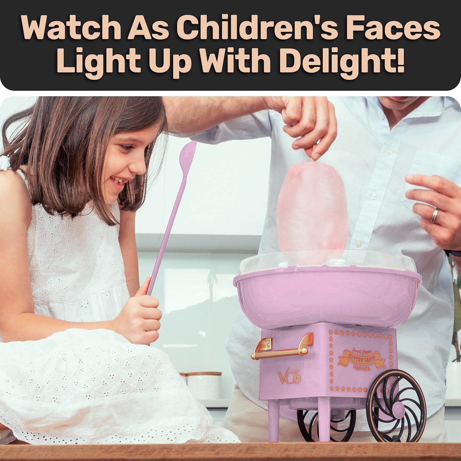 Cotton Candy Machine Kit – Pink Retro Cotton Candy Maker, Effortless Home Sugar Candy Maker Machine with Comprehensive User-Friendly Guide, Ideal for Parties & Fun Gatherings