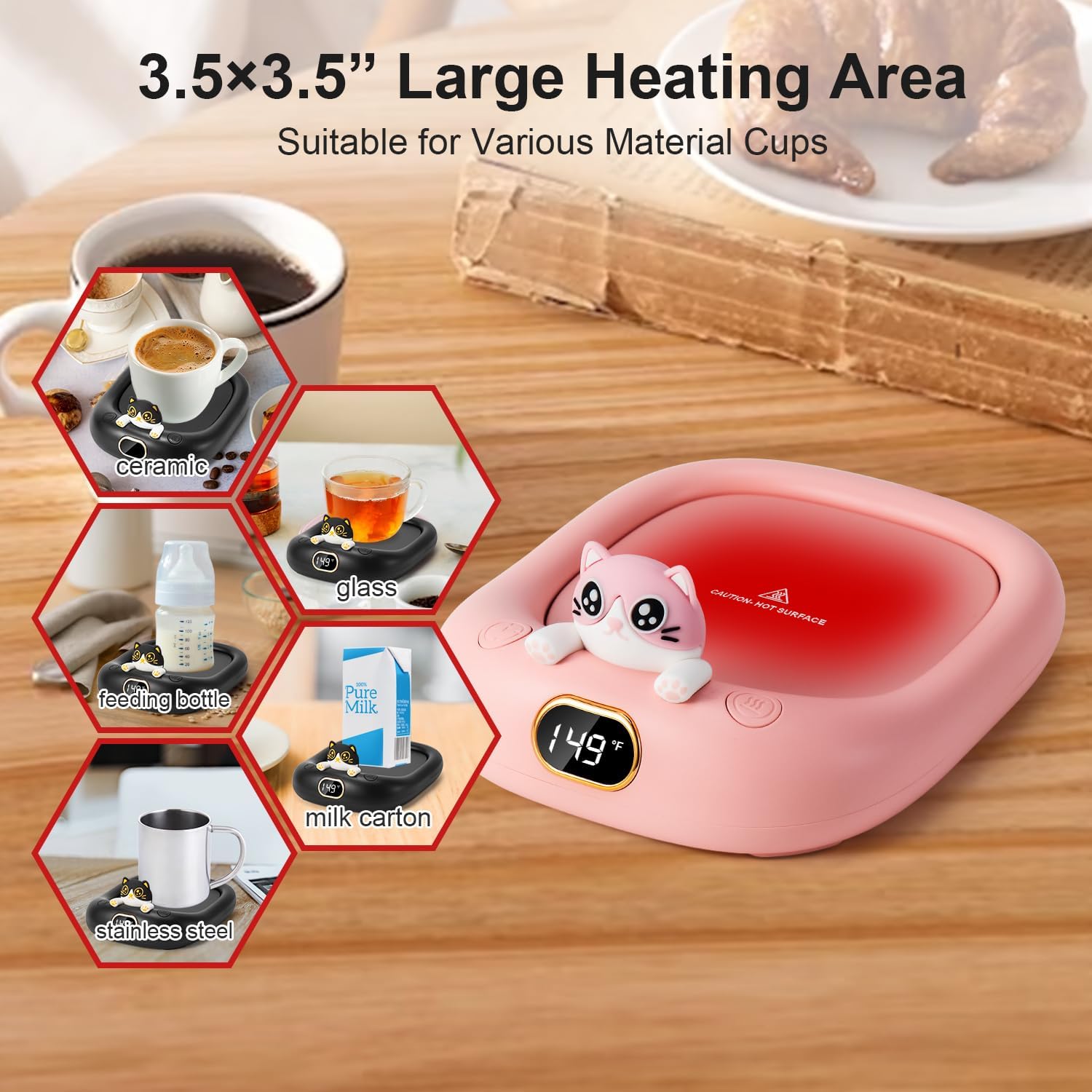 Smart Coffee Mug Warmer with Cute Cat Design for Desk, Warm Your Life.
