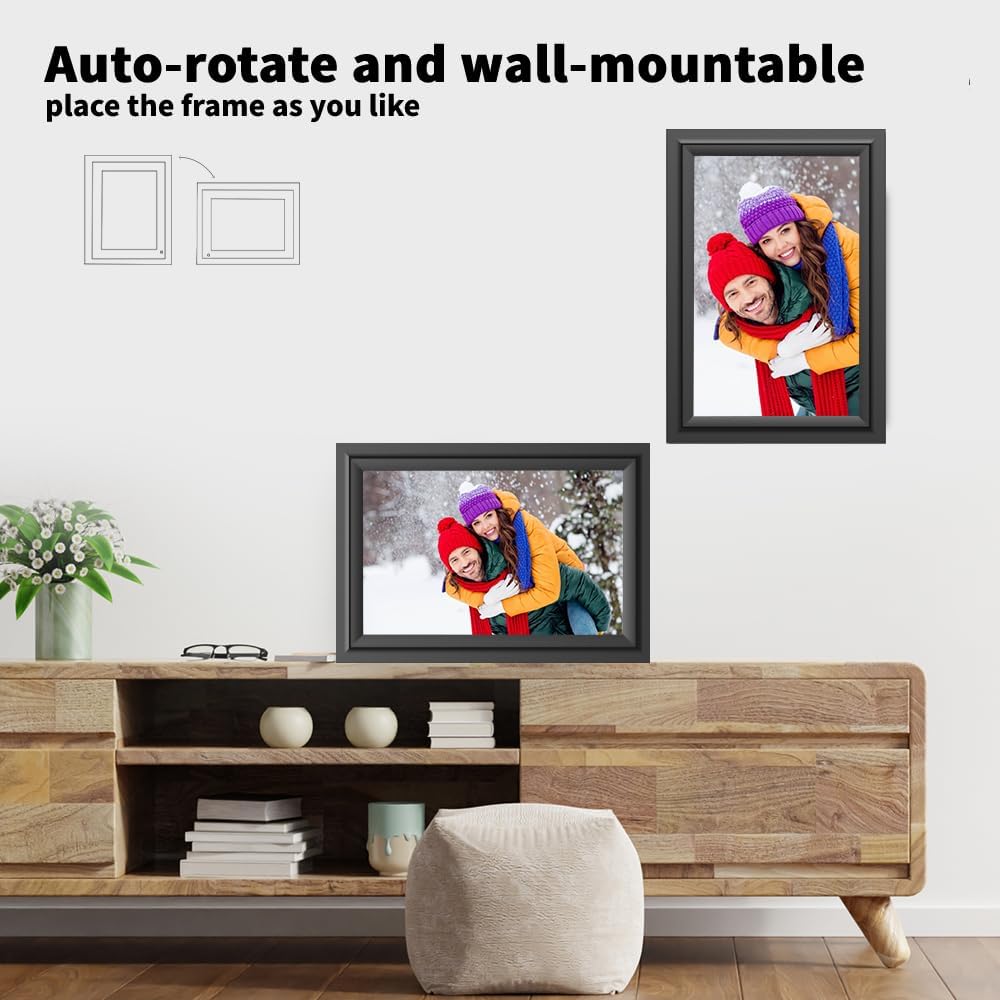 【10.1 Inch Touch Screen】: Display clear photo and video with 1280*800 high definition on the 10.1 inch IPS LCD panel at full angle, Only a few steps to complete the setup in minutes, touch screen allows you to view and operate photos easily on the digital photo frame.