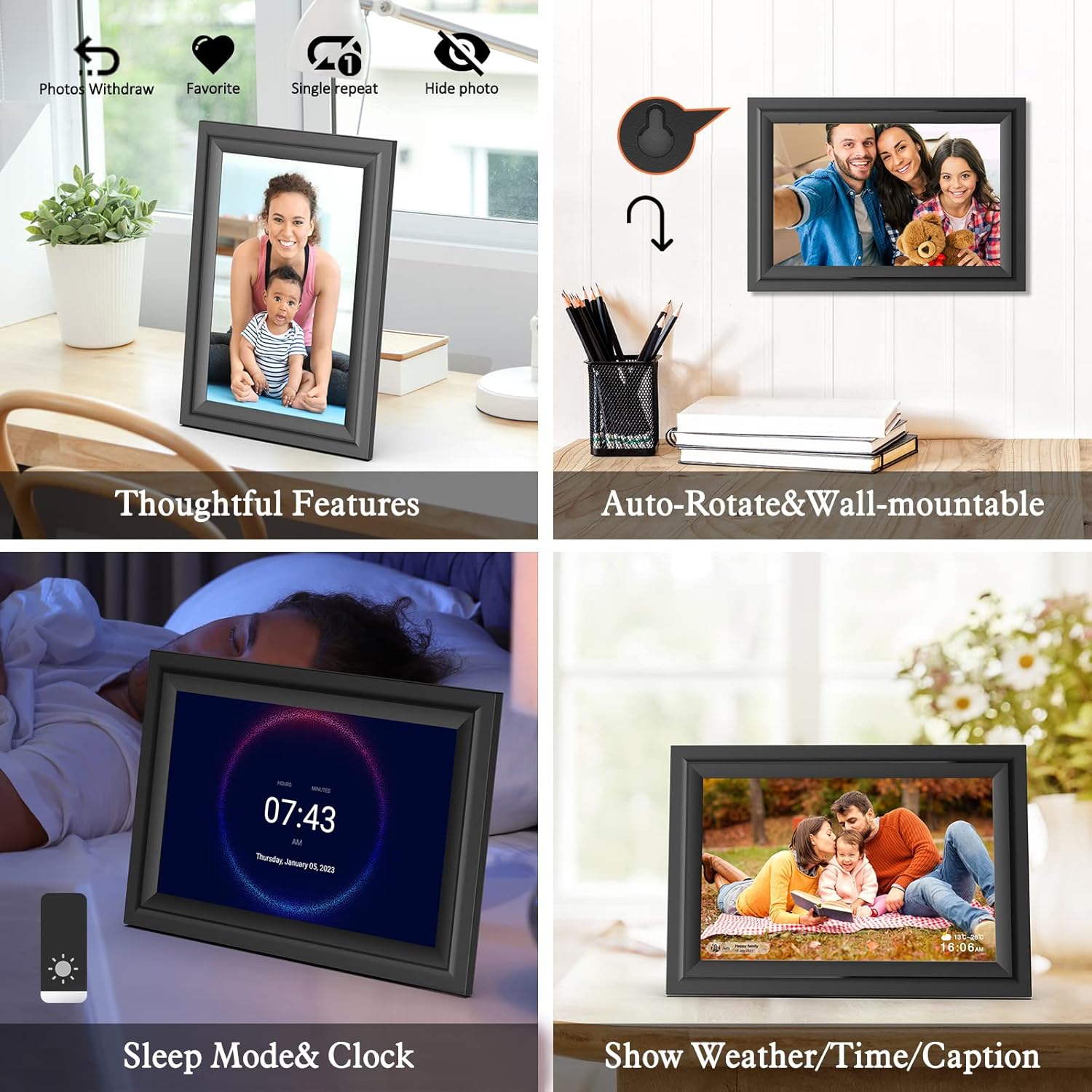 Digital Picture Frame, 10.1 Inch WiFi Digital Photo Frame, IPS HD Touch Screen Electronic Picture Frame, 16GB Storage, Slideshow, Easy to Share Photos and Video via Uhale APP, Gifts for Family