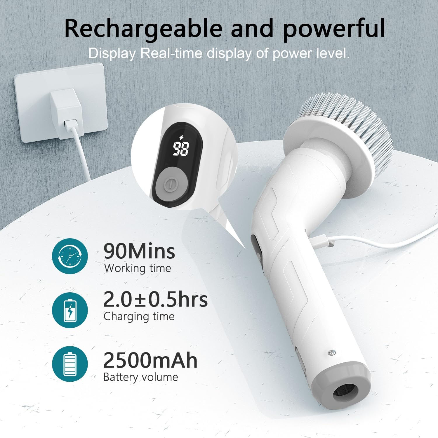 🎁【Perfect Gift For Family And Friends】Portable cordless hand-held shower scrubber is ergonomically designed, you can use the electric cleaning brush to do housework in the most relaxed posture, no need to bend down and kneel to clean, take care of your waist and joints, save time and effort. it is an ideal gift for family, parents and friends, make housework a fun.