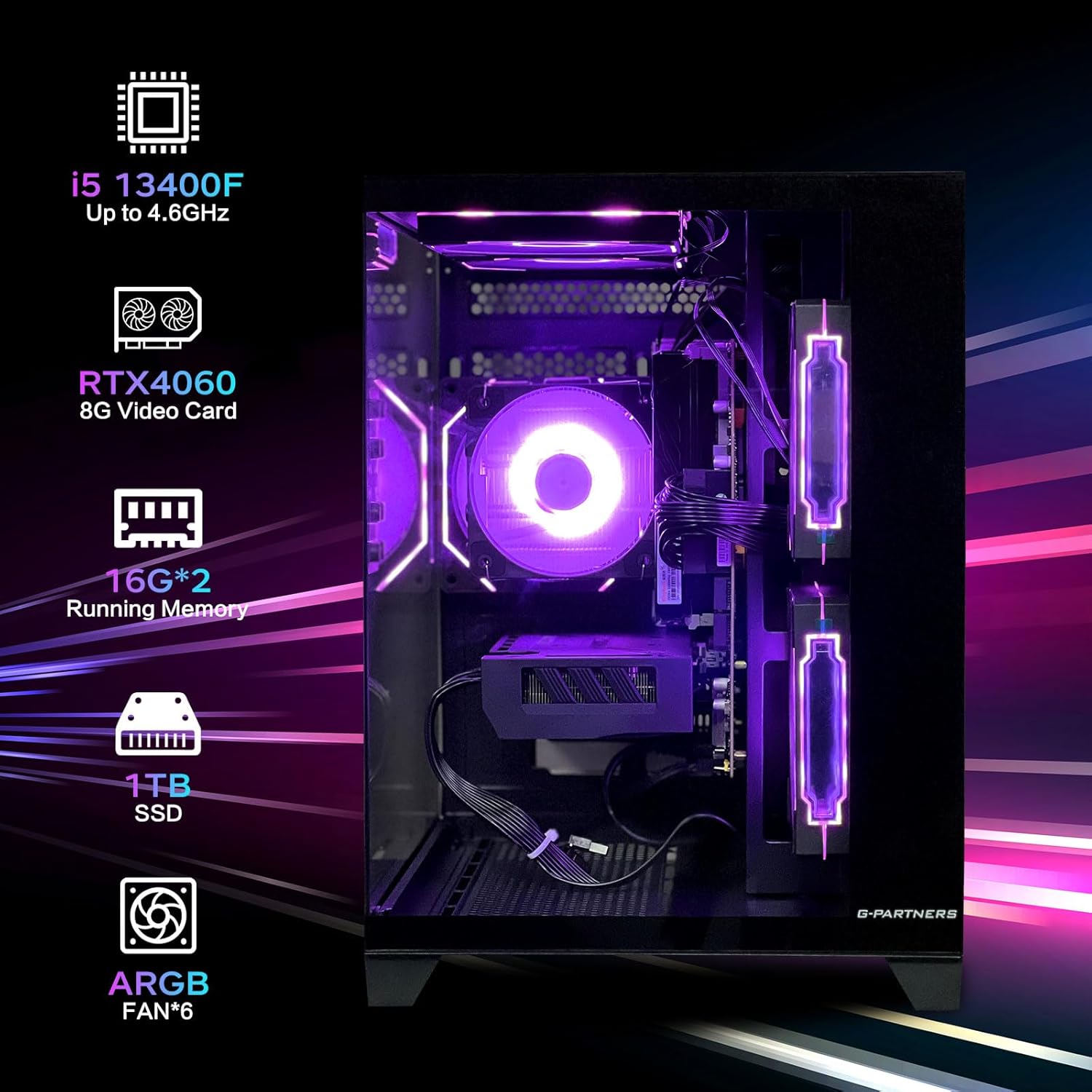 Gaming Desktop Computer PC,Intel Core I5-13400F,GeForce RTX 4060, 32GB RAM and 1TB NVMe M.2 SSD, WiFi6E, ARGB Fan,Prebuilt Gaming PC Tower(13400F+32GB RAM)