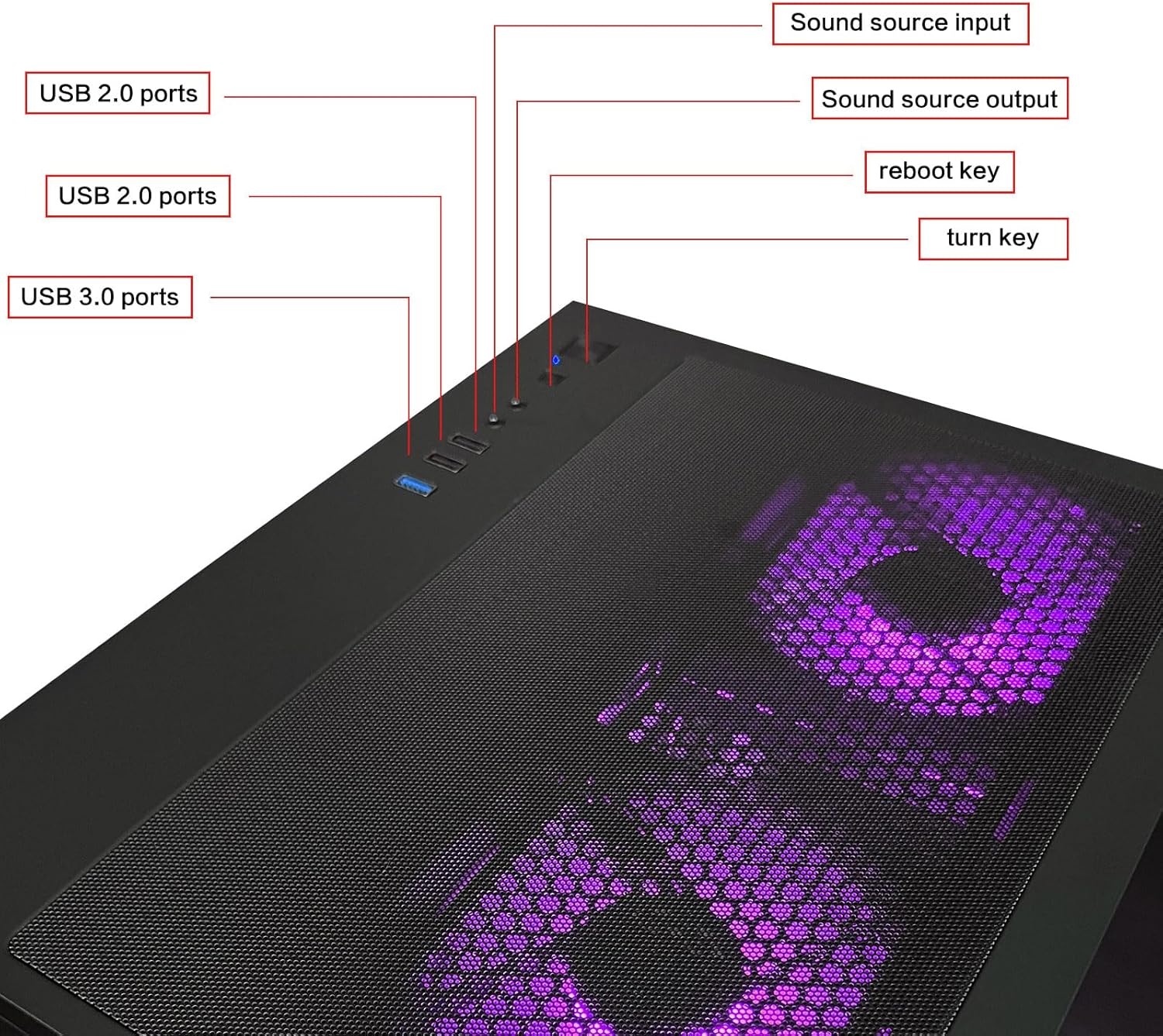 ARGB*6 fans for powerful airflow and dynamic speed control, free remote control for controllable adjustment | [PC case] Panoramic view with front and side full-panel tempered glass for better viewing style | | Graphics output options include 1x HDMI and 1x DisplayPort guaranteed, other ports may vary