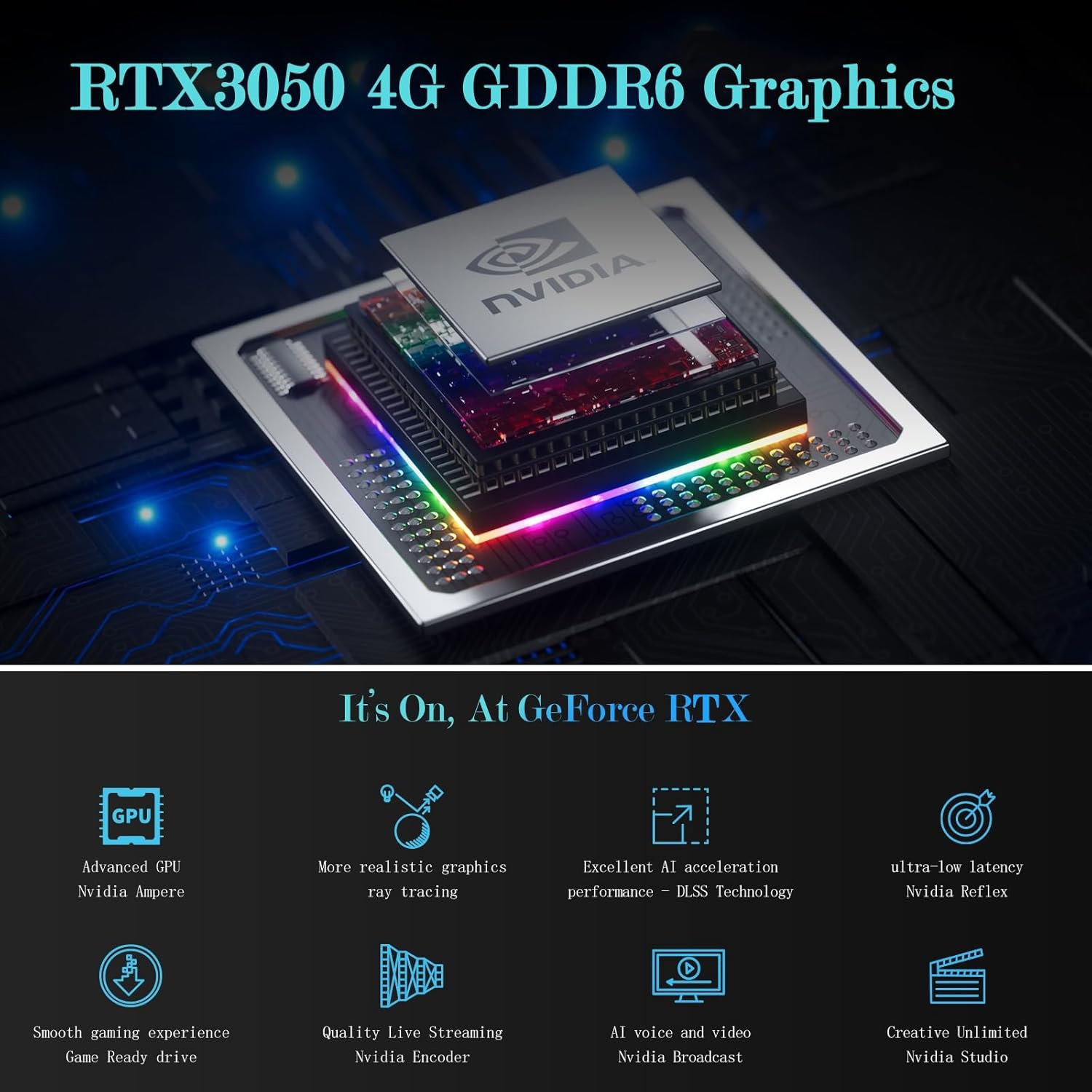 [Nvidia Dedicated Graphics Card] – The Gaming PC equipped with the RTX 3050 dedicated graphics card, it utilizes the GA106-150 core and boasts 2048 CUDA cores, 64 tensor cores, and 16 RT cores. With a 4GB GDDR6 memory capacity, it supports ray tracing and DLSS technology, delivering more realistic lighting effects and a smooth gaming experience. offers faster rendering speeds and lower latency.