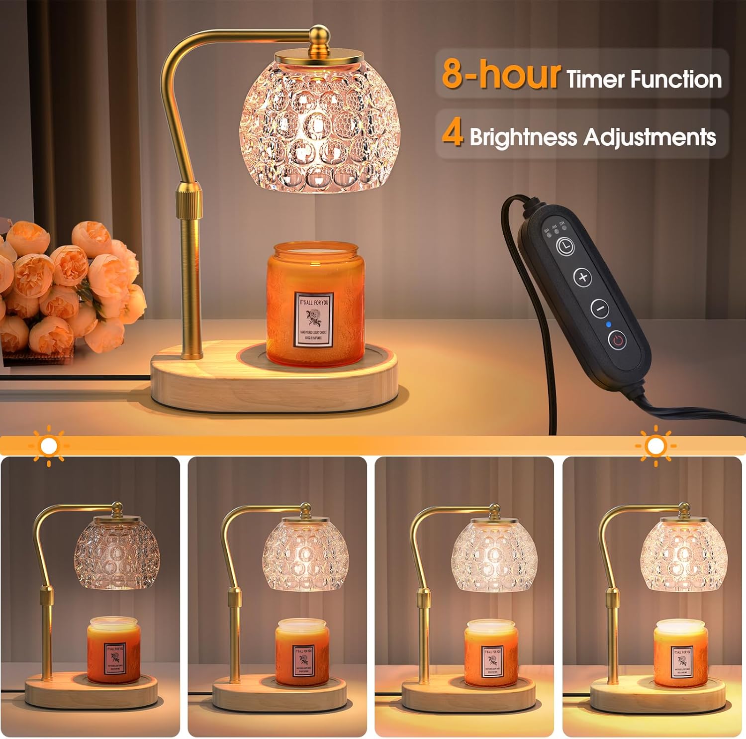 Gifts for Women, Candle Warmer Lamp with Timer & Dimmer, Candle Warmer Lamp Height Adjustable for Jar Scented Candles with 2 Bulbs for Home Decor, Birthday Brithday Day Gifts for Her (gold)